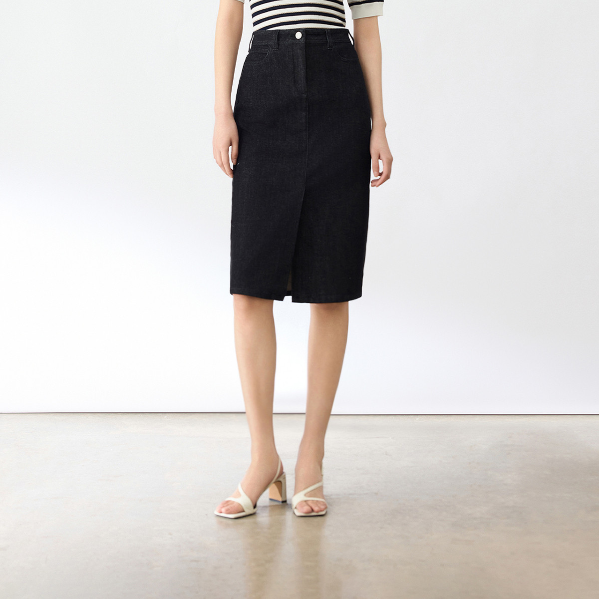 夏款高腰气质牛仔半身裙前开衩直筒裙女 818841