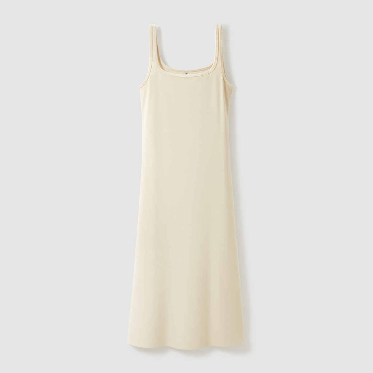 凉皮501Cool长款罗纹连衣裙高弹修身显瘦亲肤凉感方领长裙 610629