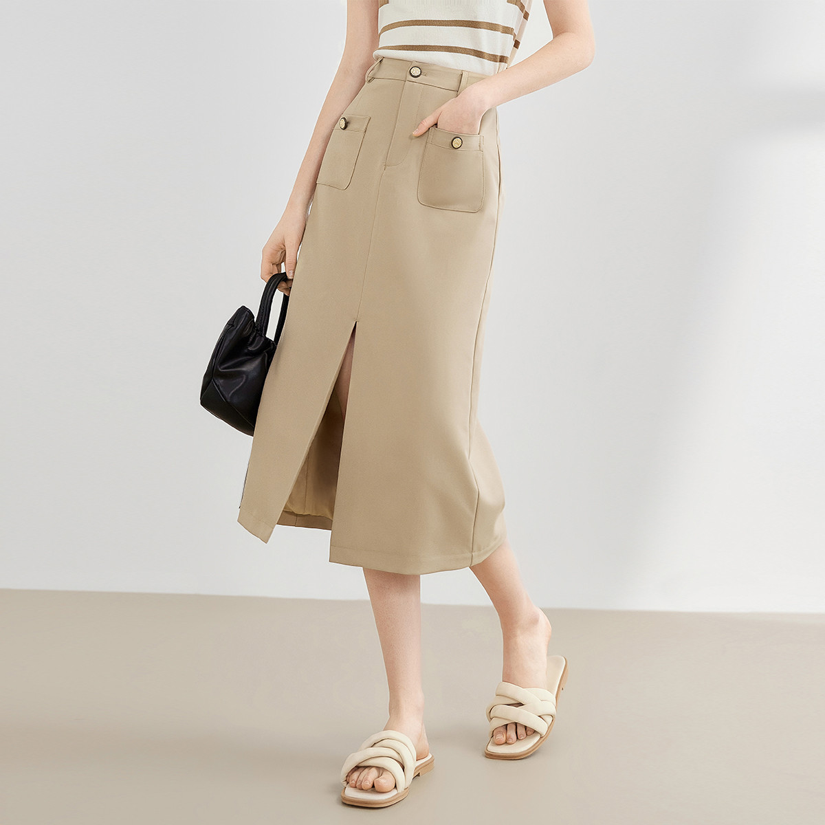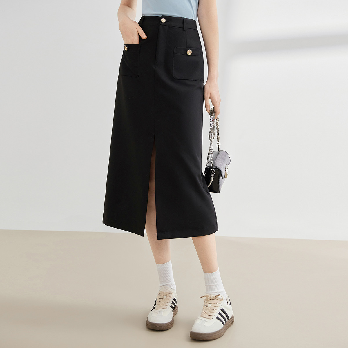 【2024夏季】高腰口袋设计感开叉半身裙女时尚气质通勤中长裙 961556