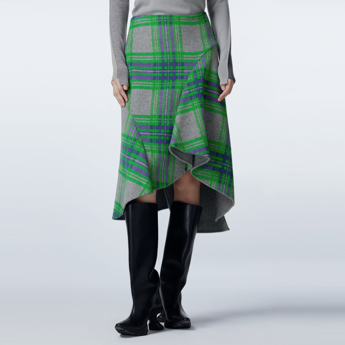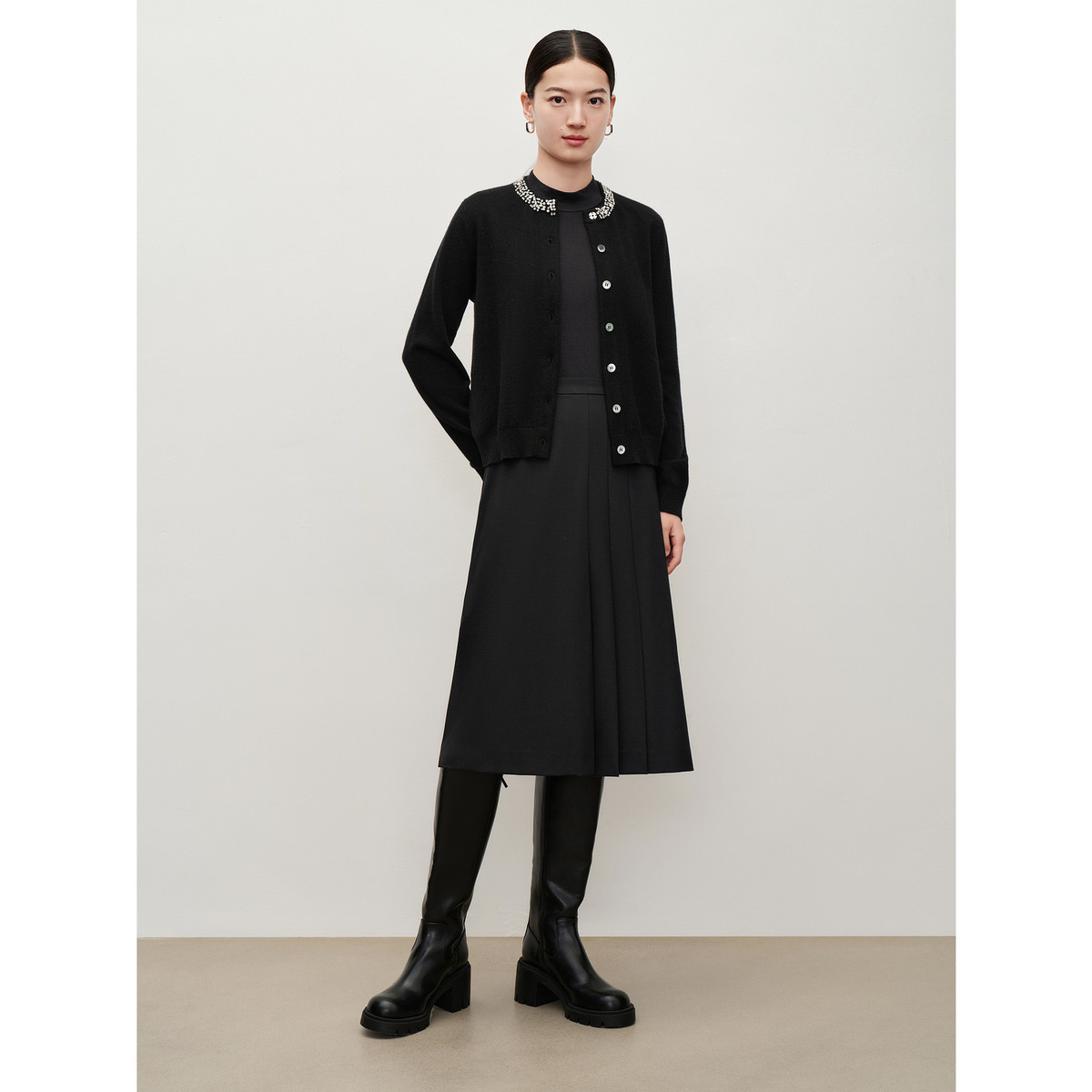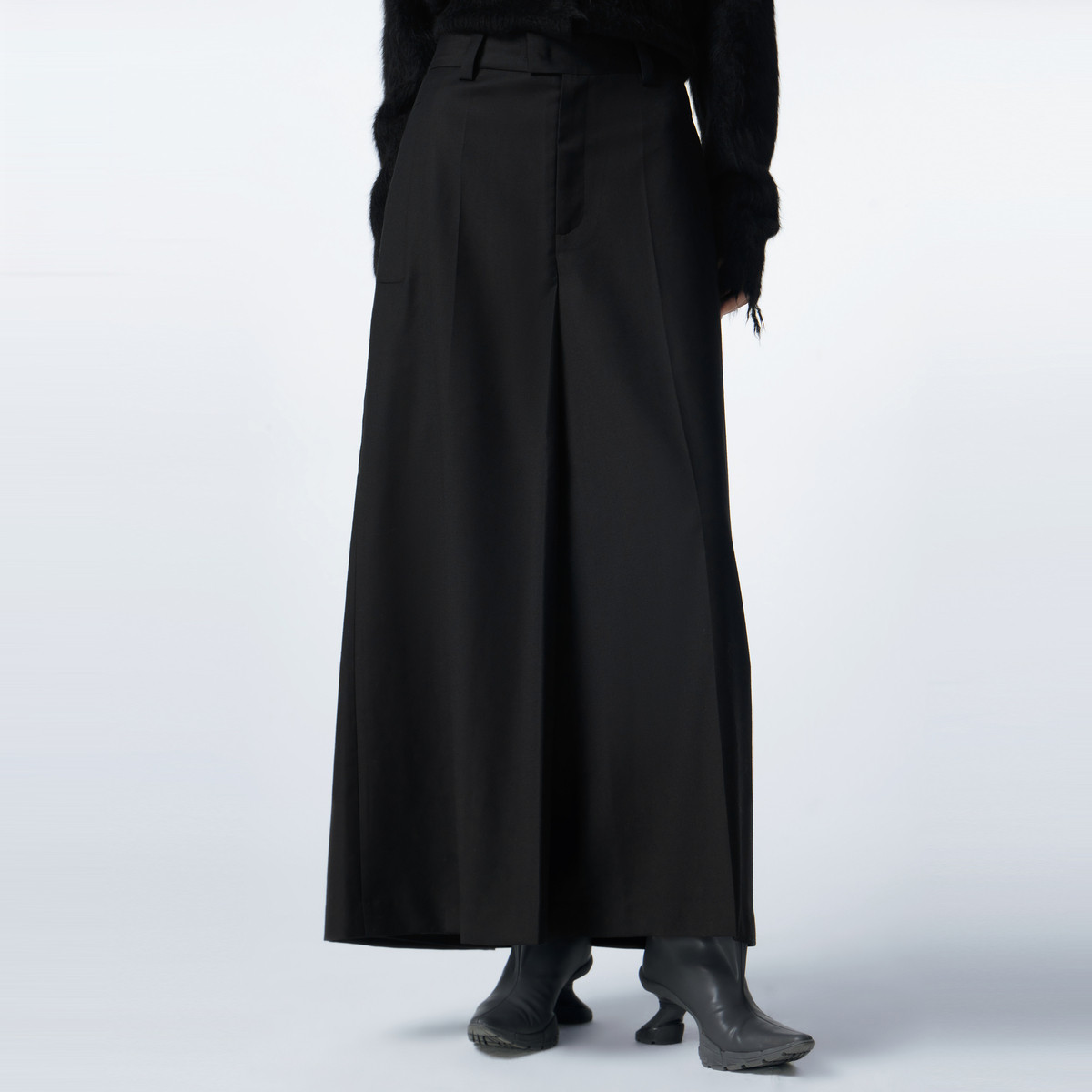 旗下安娜蔻系列通勤设计感羊毛混纺压褶中长裙半身裙女秋季 474828
