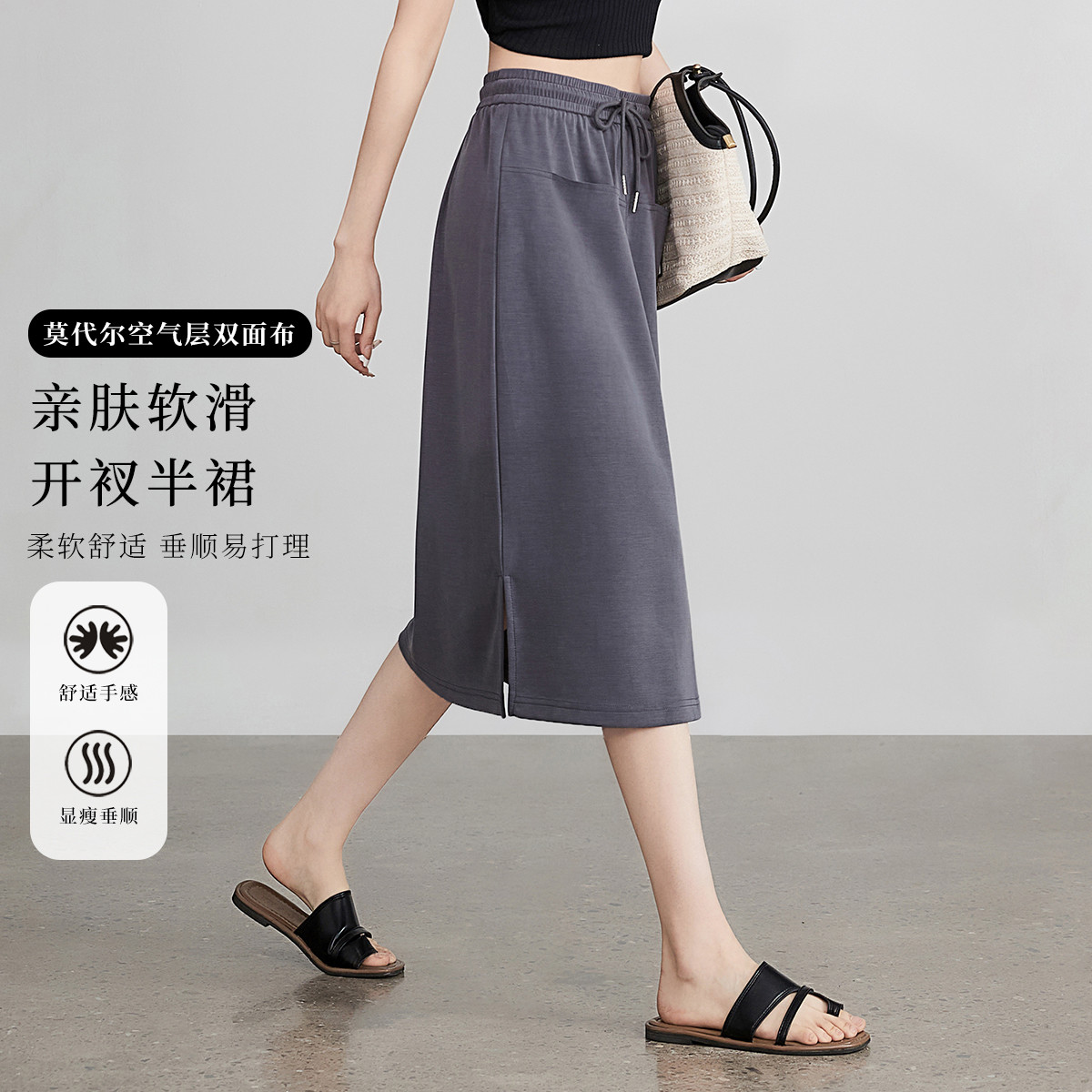 【超柔亲肤】莫代尔空气层女式半身裙A字小开叉设计气质中长裙 282049