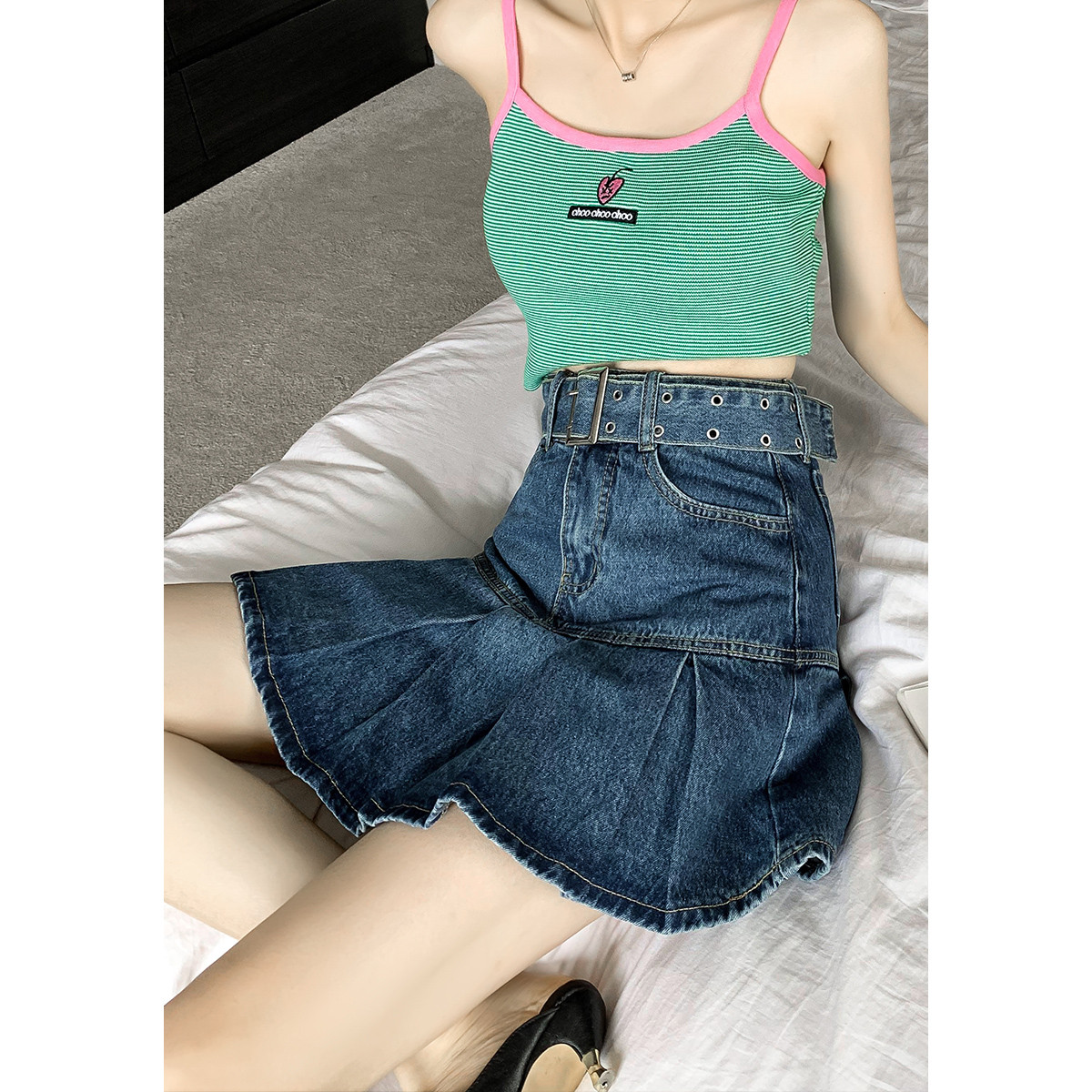 高腰牛仔短裙显瘦A字裙百搭甜酷半身裙女 876035