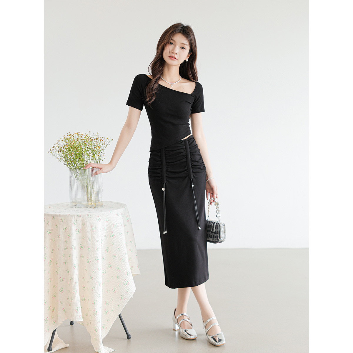 【2024夏季】高腰口袋设计感开叉半身裙女时尚气质通勤中长裙 973844