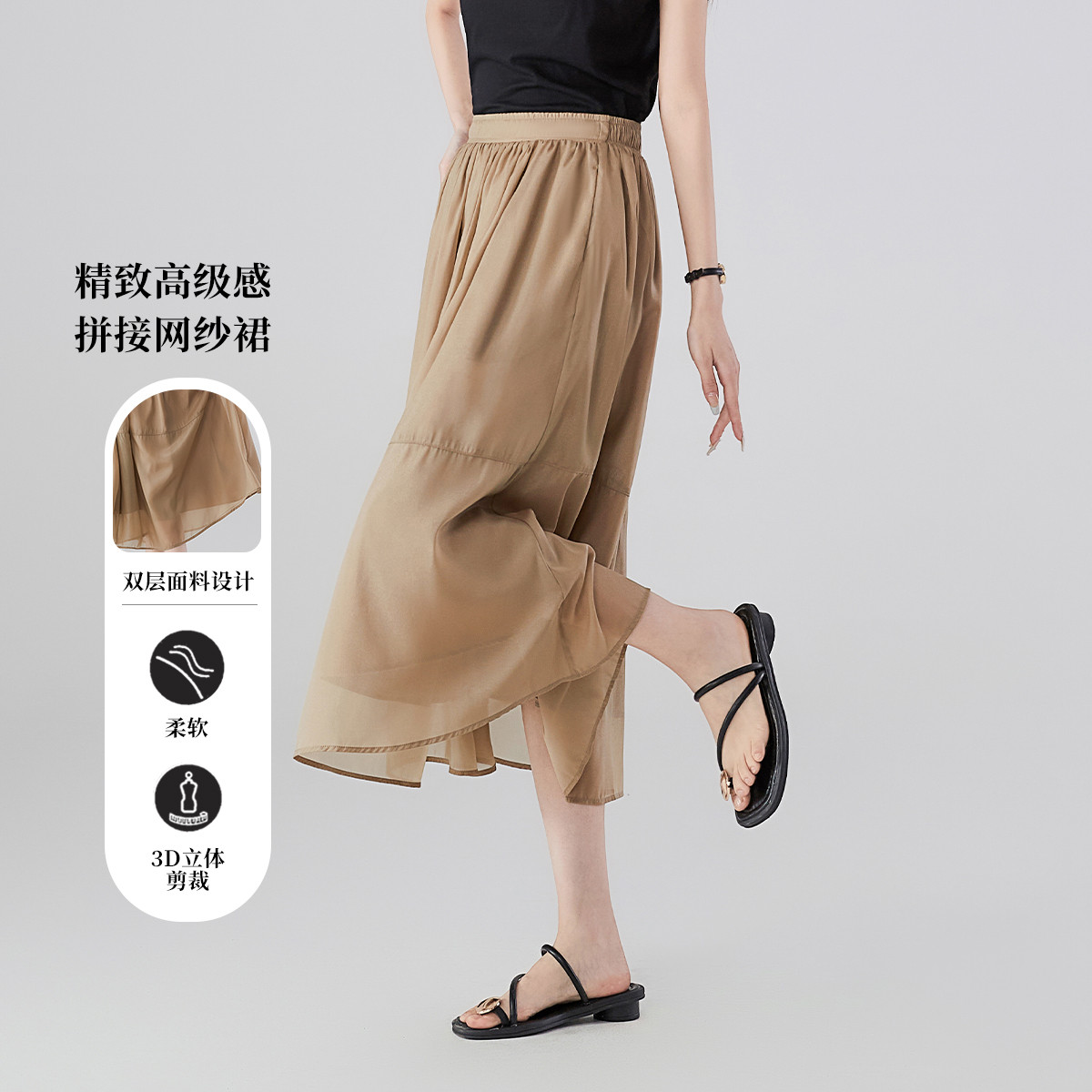 【高级精致网纱裙】细腻软糯垂感飘逸仙女裙设计感拼接半身裙女 030593