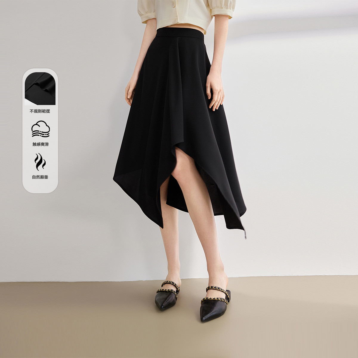 【商场同款】波浪下摆不规则设计半截裙高腰显瘦修身A字短裙女 751702