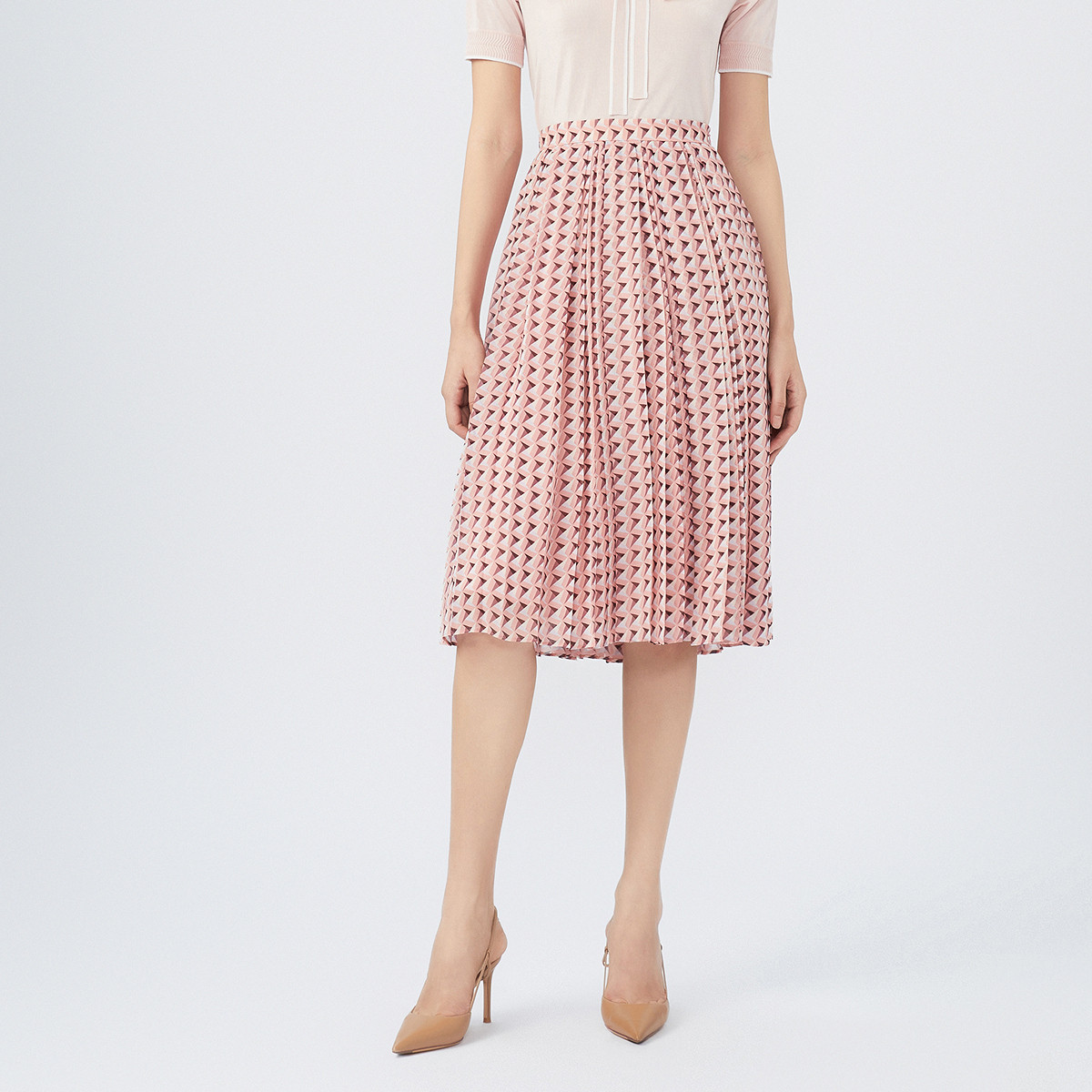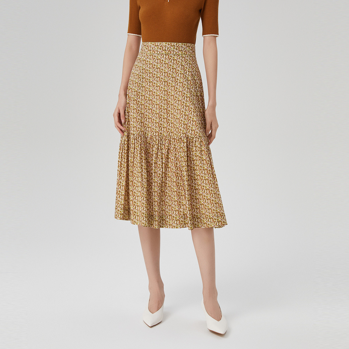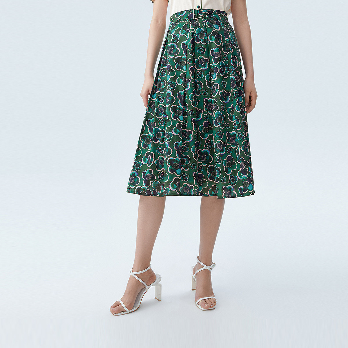 春秋款高腰A字半裙设计师印花小众气质通勤桑蚕丝半截裙朗姿集团 656601