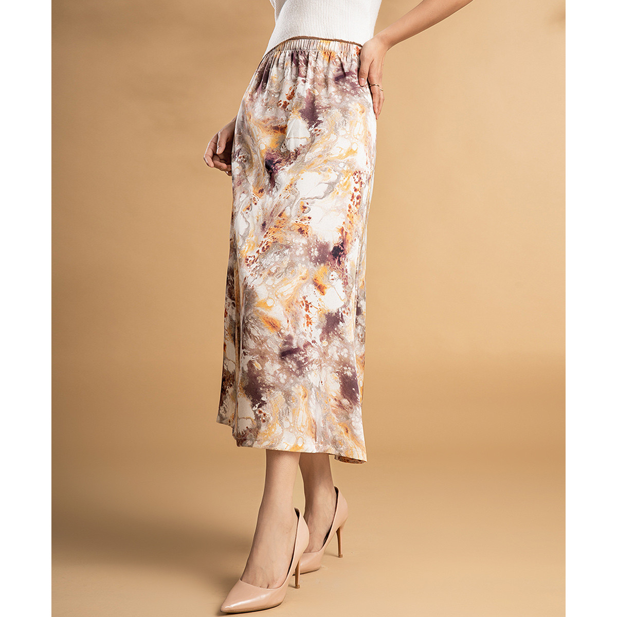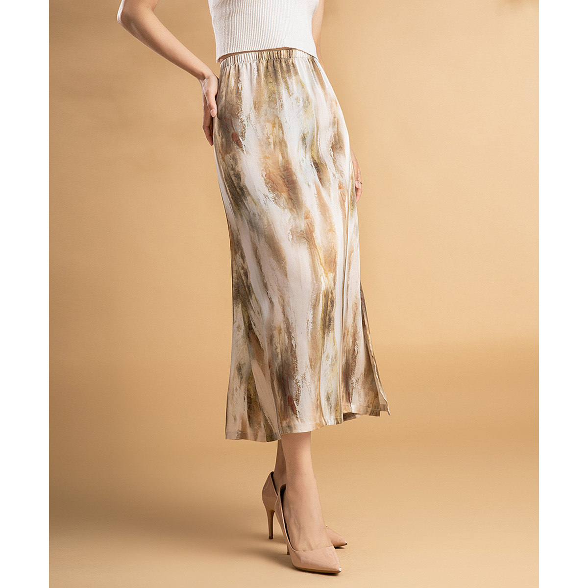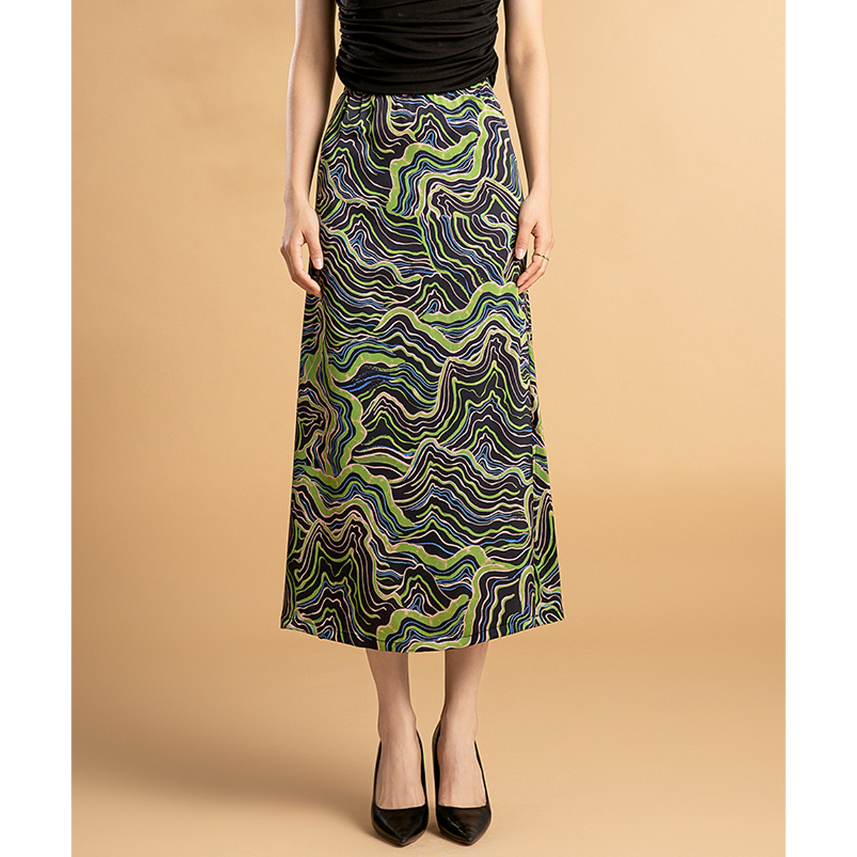 春秋款高腰A字半裙设计师印花小众气质通勤桑蚕丝半截裙朗姿集团 656601