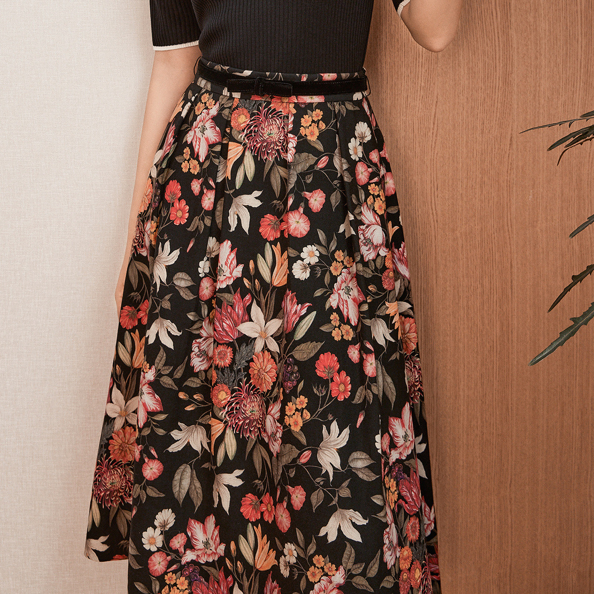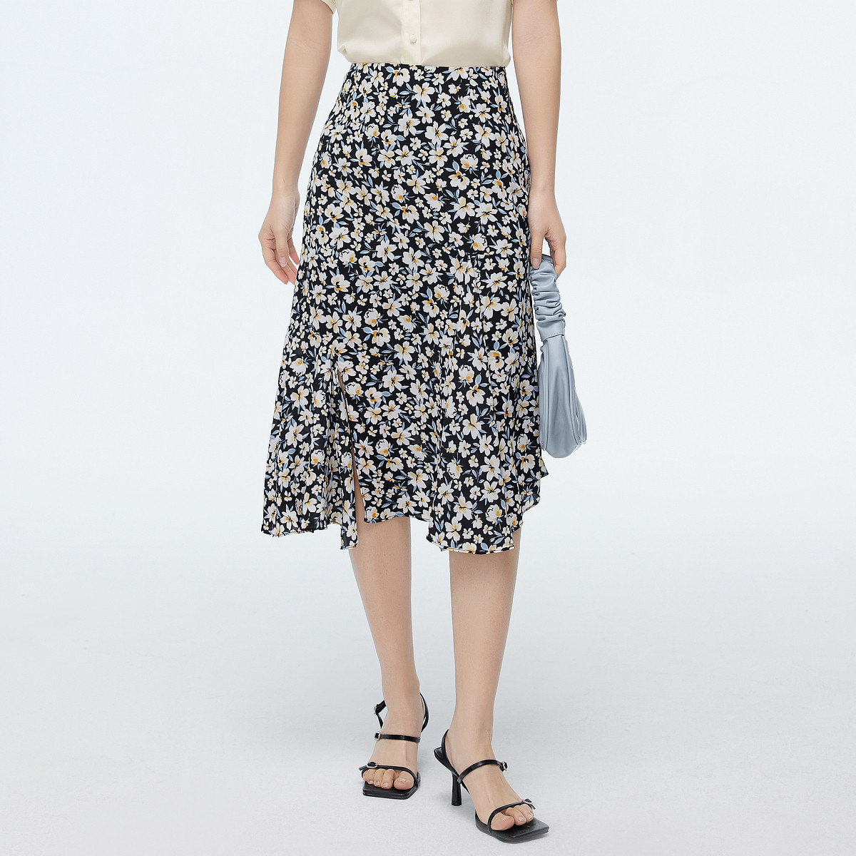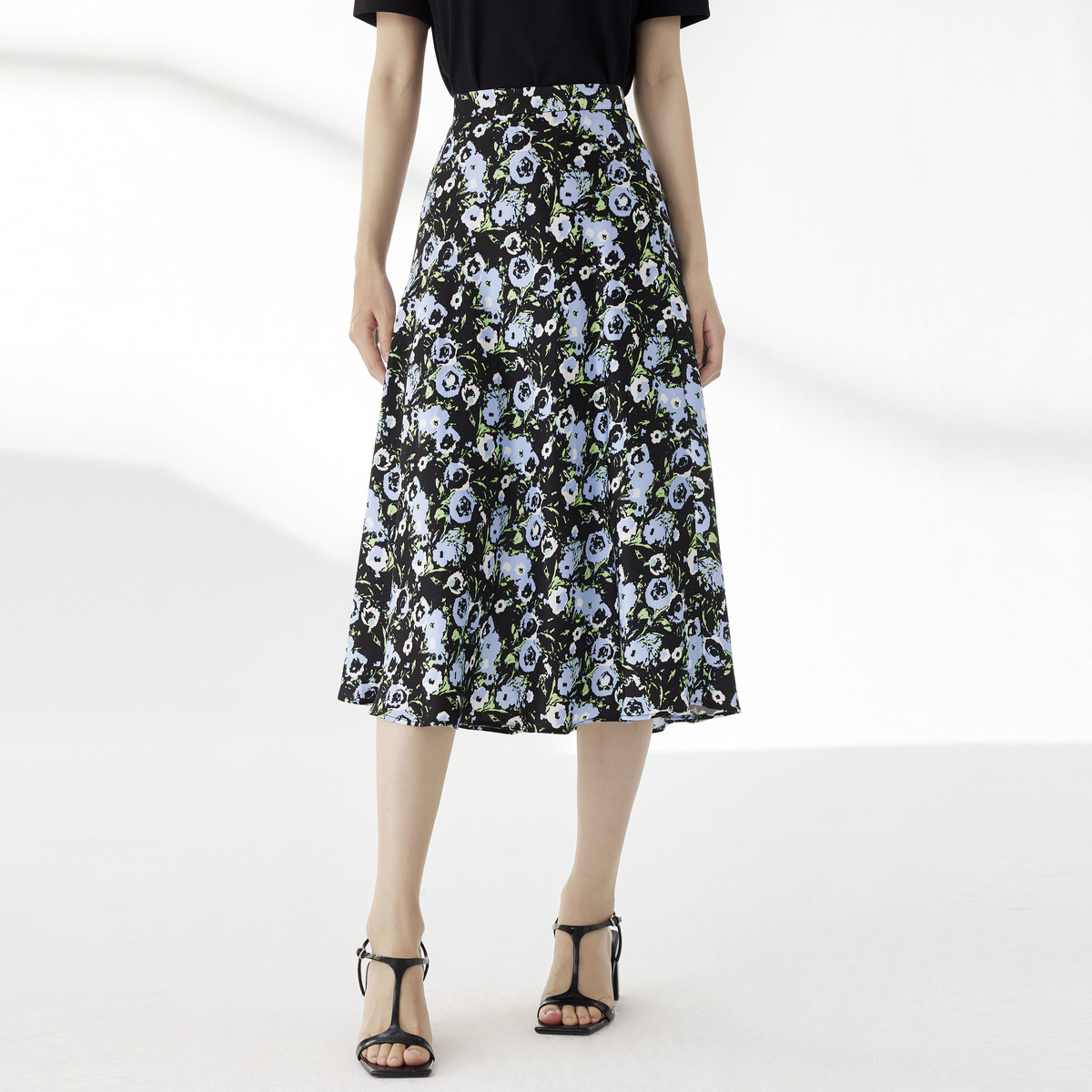春秋植物印花设计感女式半裙A字裙朗姿集团旗下俪雅 954969