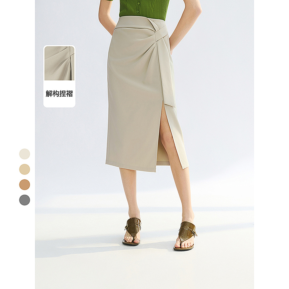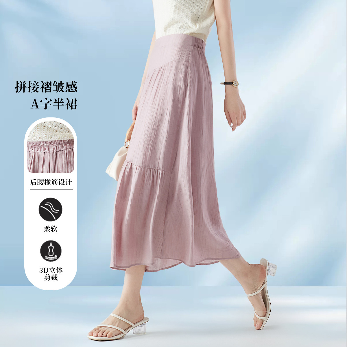 【设计感拼接肌理裙】清新温柔薄款皱感垂顺半身裙遮肉显瘦裙子 440001