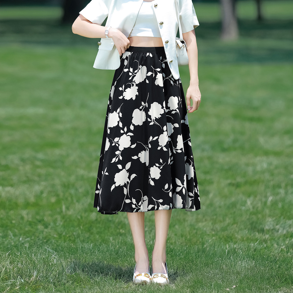 【水墨印花】夏古典优雅风松紧腰舒适藏肉a字半身裙女中长款度假 881985