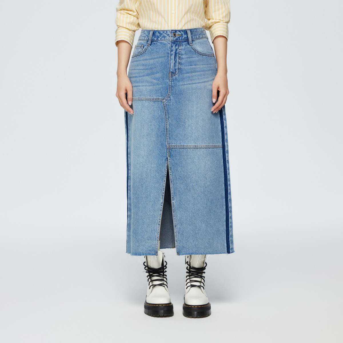 Gap女装夏季前开衩修身牛仔半裙时尚拼接高腰长裙874444 946842