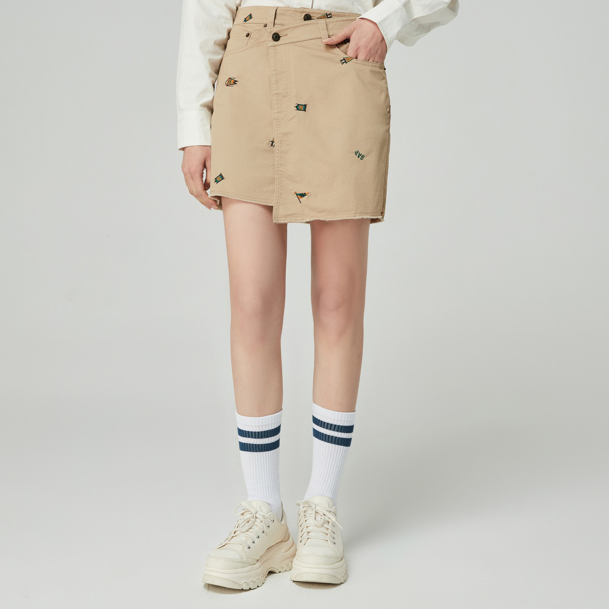Gap女装夏季卡其布不对称刺绣短裙百搭柔软裙装452557 512474