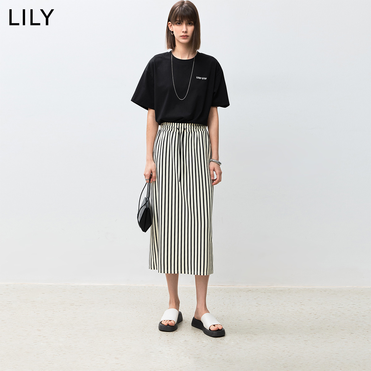 复古时尚条纹松紧腰显瘦垂坠感气质直筒半身裙 520859