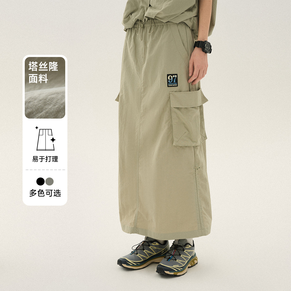 【100%棉】抽绳复古百搭工装裙夏季纯色简约半截裙 889757