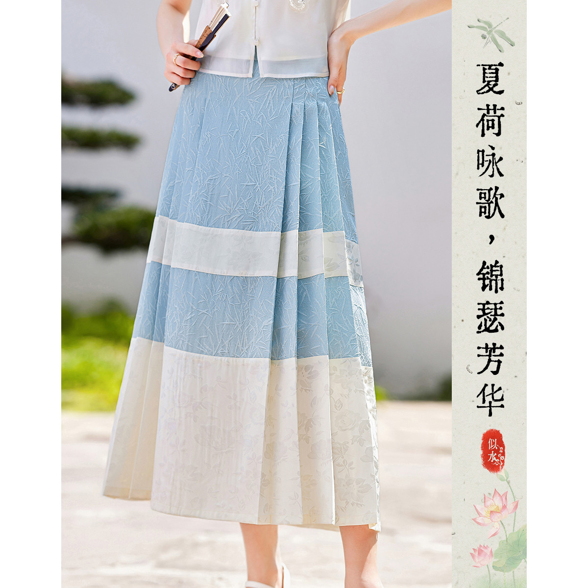 【菘蓝竹烟】夏高级感马面裙缎面提花设计感气质小个子半身裙 330392