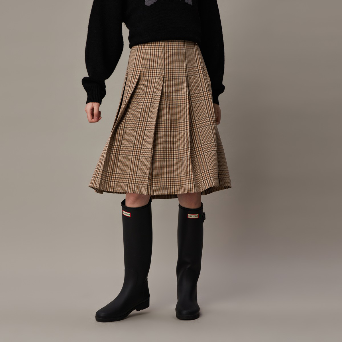 【春秋专柜款】高腰A摆格纹印花减龄百搭学院风半身裙 939153