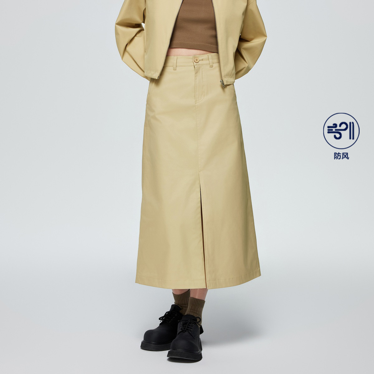 Gap女装夏防风中腰修身半身长裙百搭前开叉A字裙401264 299098