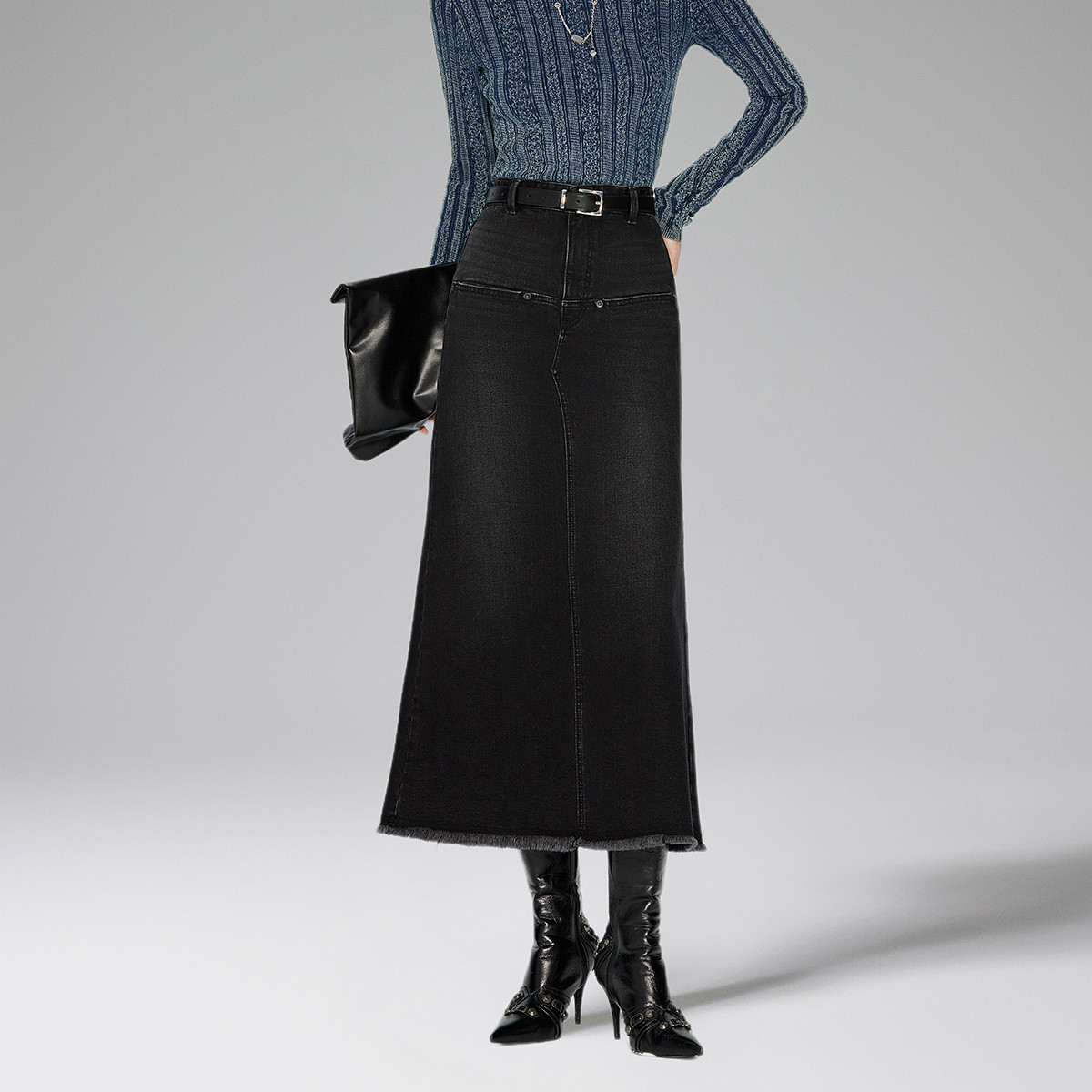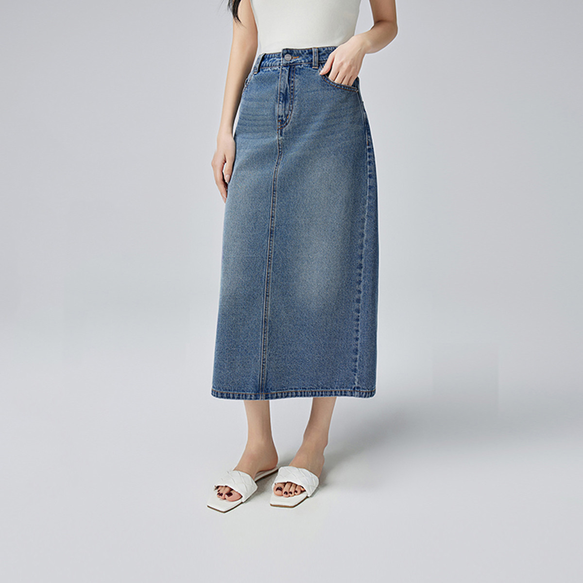 高腰遮肉复古牛仔半身裙女开叉设计时尚潮流通勤舒适包臀裙 872267