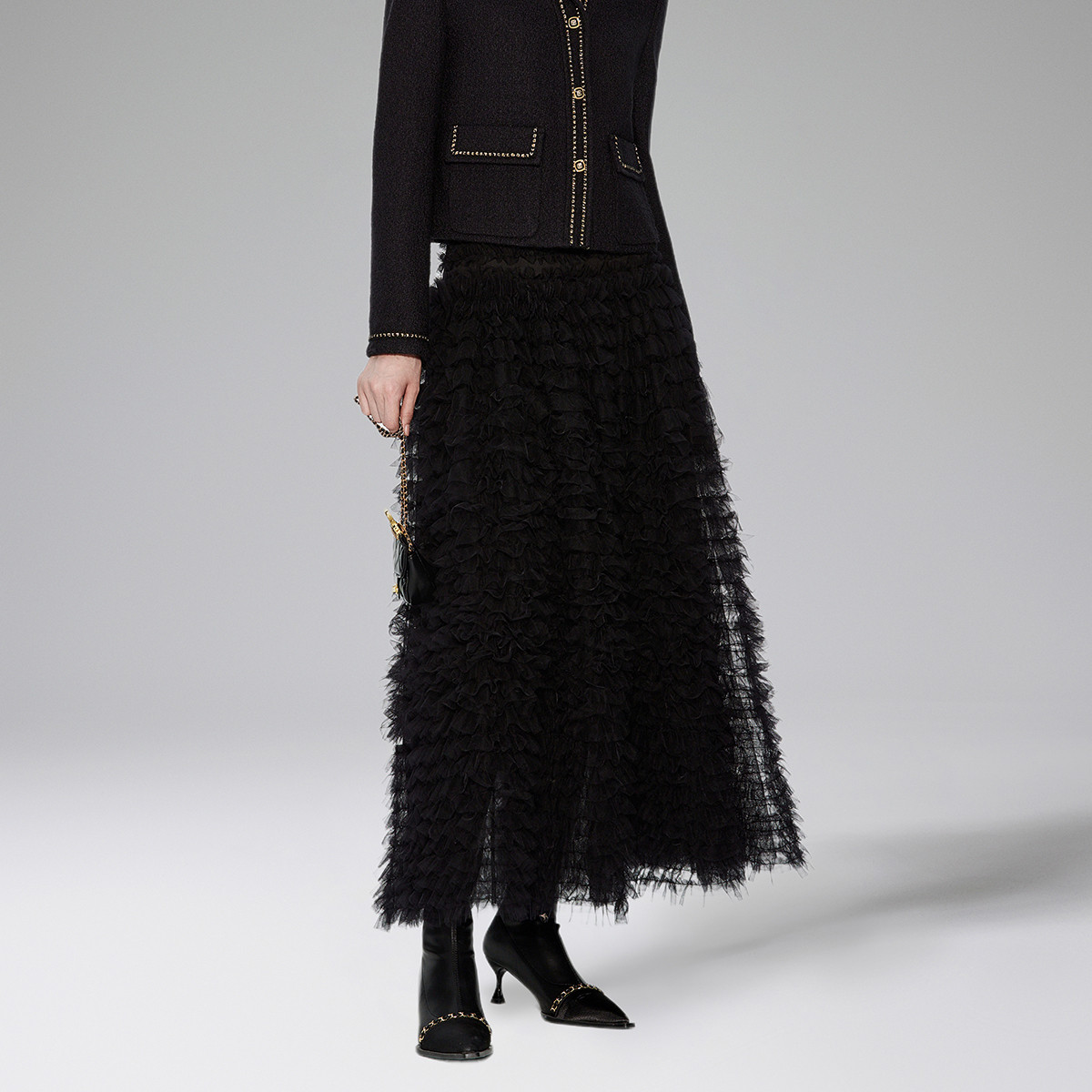 春装 长裙a字蛋糕裙高腰网纱半身裙 086863