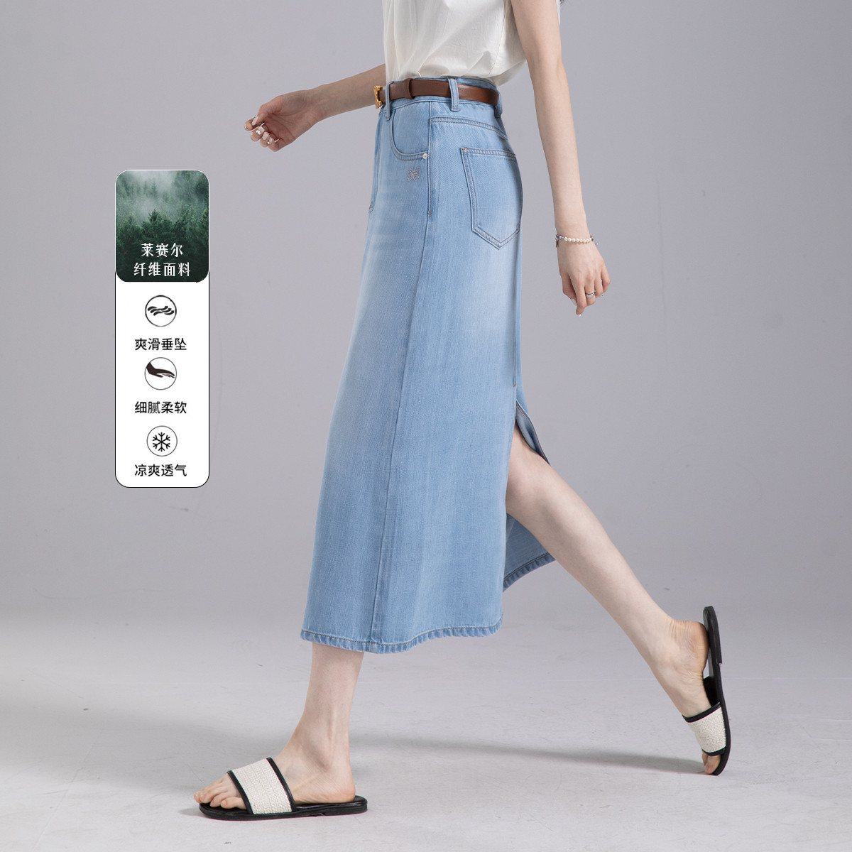 【清凉莱赛尔】24夏季柔软天丝牛仔半裙薄款下摆开衩中长裙女 462977