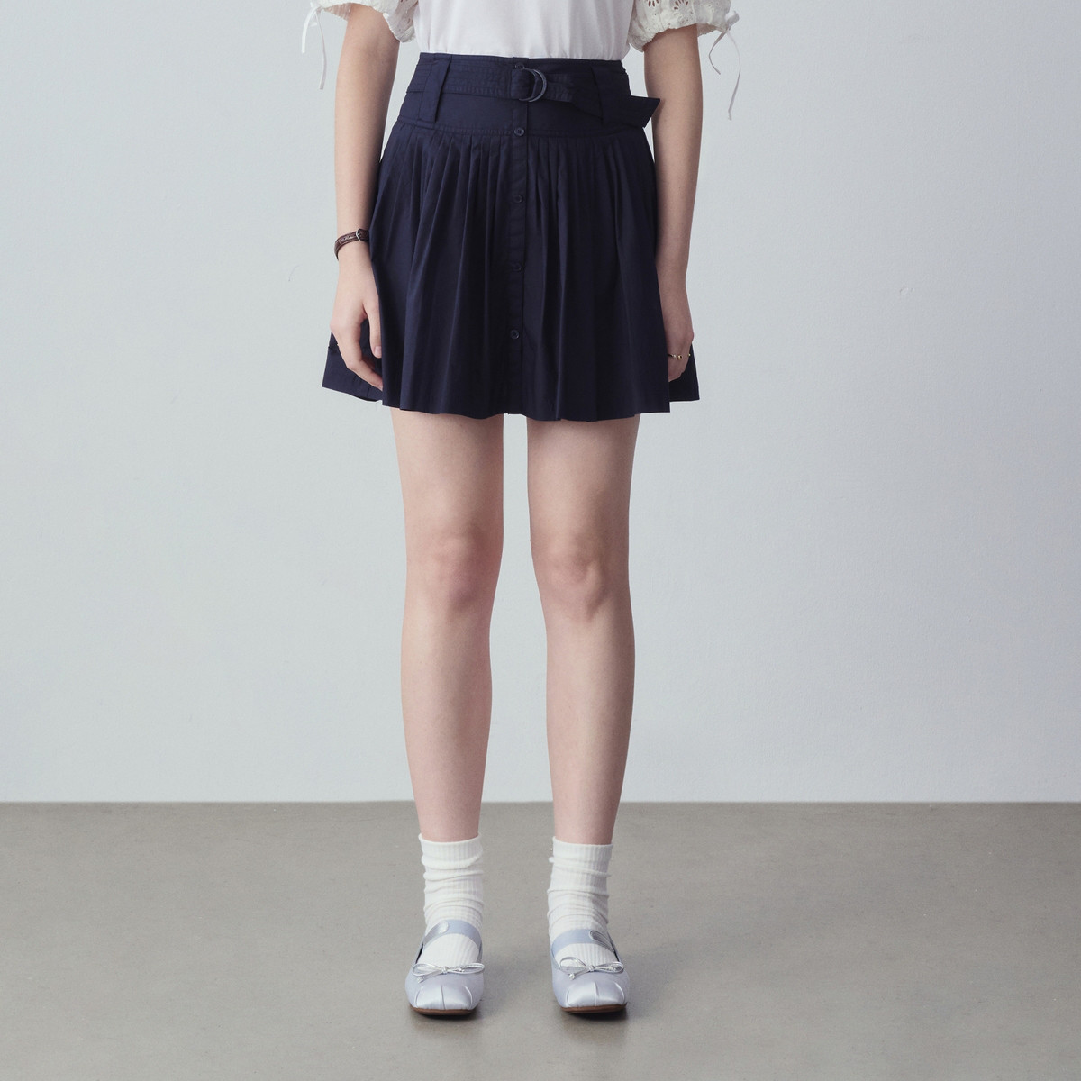 小熊春夏款简约学院风系腰带百褶短裙半身裙女 159169