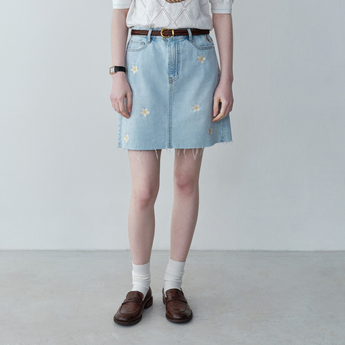 小熊女装夏装花朵刺绣牛仔短裙少女感半身裙 466625