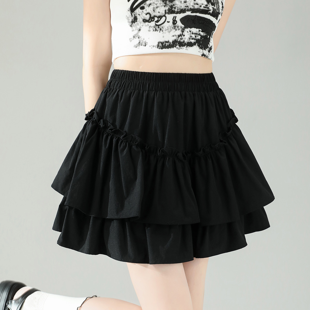 纯色蛋糕裙抽褶花边设计百搭甜美百搭夏季短裙松紧腰半截裙 142667