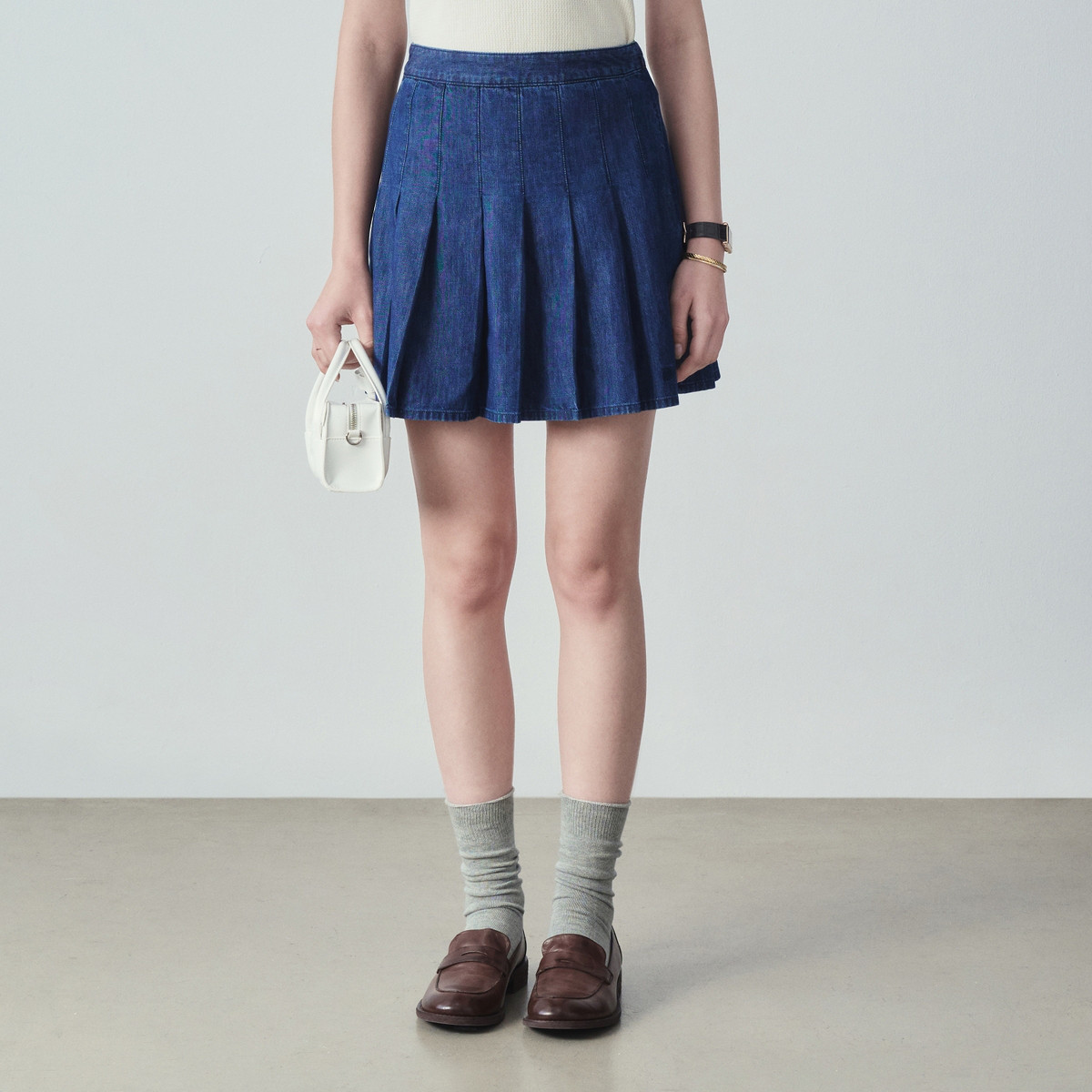 小熊女装夏季款牛仔百褶短裙A字裙时尚裙学院风 828289