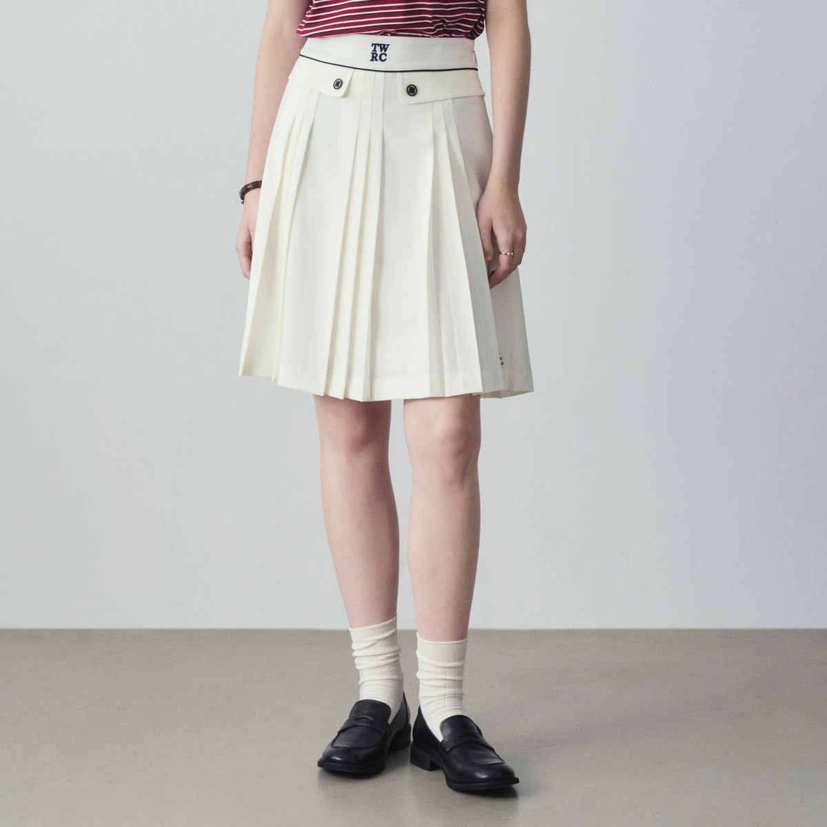 小熊女装夏季款海军风百褶裙中裙白色高腰A字裙 247361