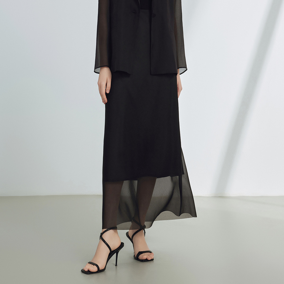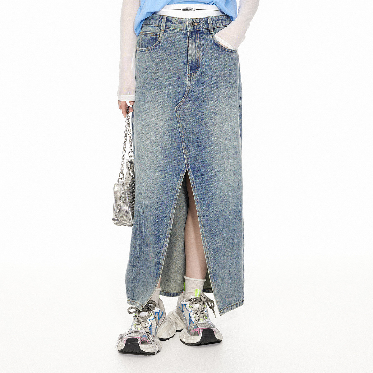地素牛仔双腰头长裙春专柜开叉设计半身长裙女 075787