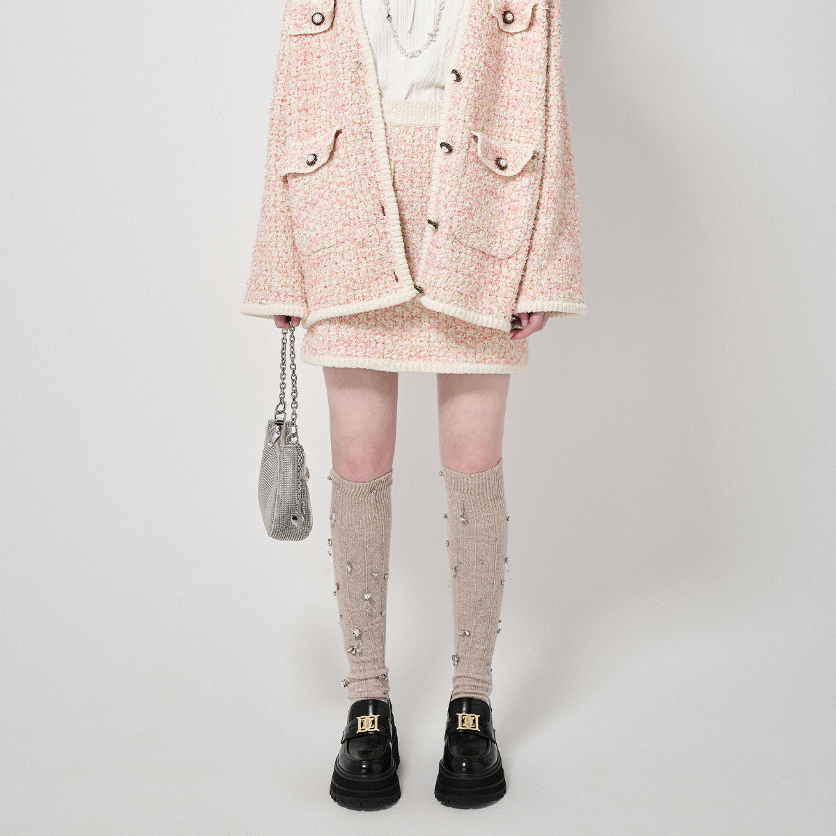 地素针织半裙秋冬小香风混织纱线短裙女 679051