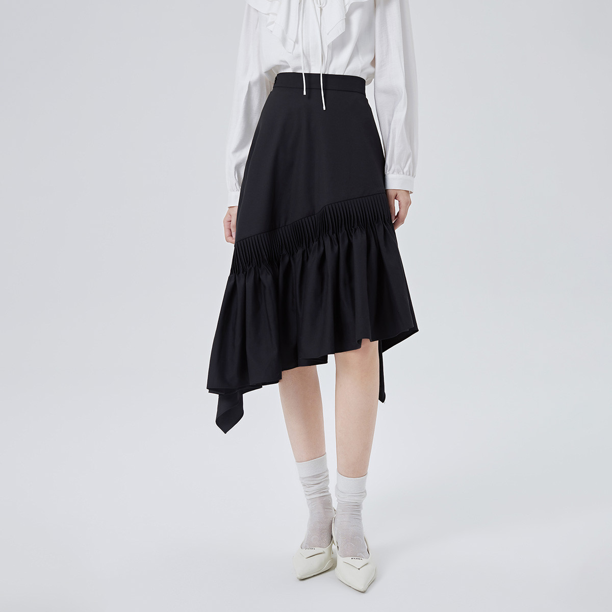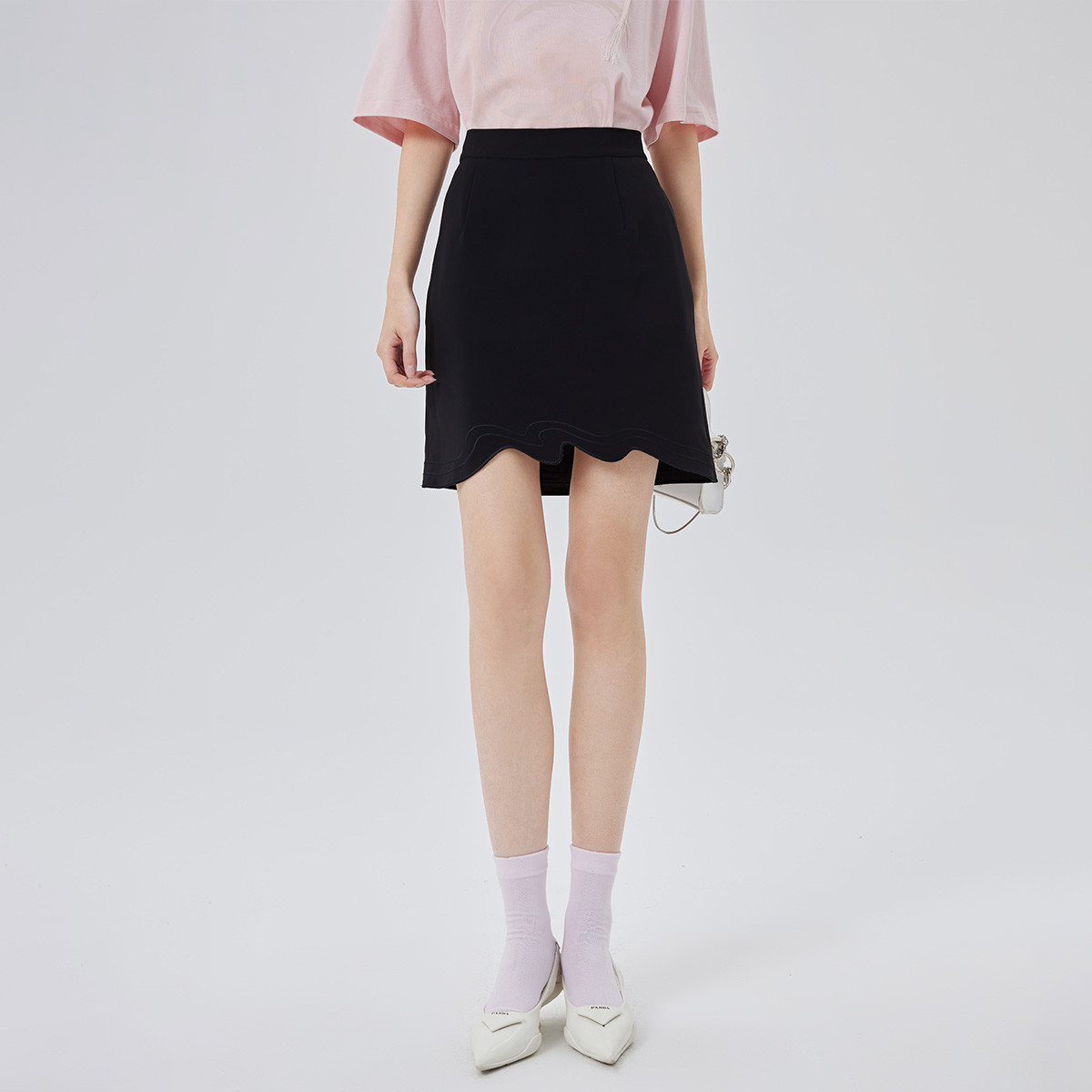 【商场同款】波浪下摆不规则设计半截裙高腰显瘦修身A字短裙女 755798