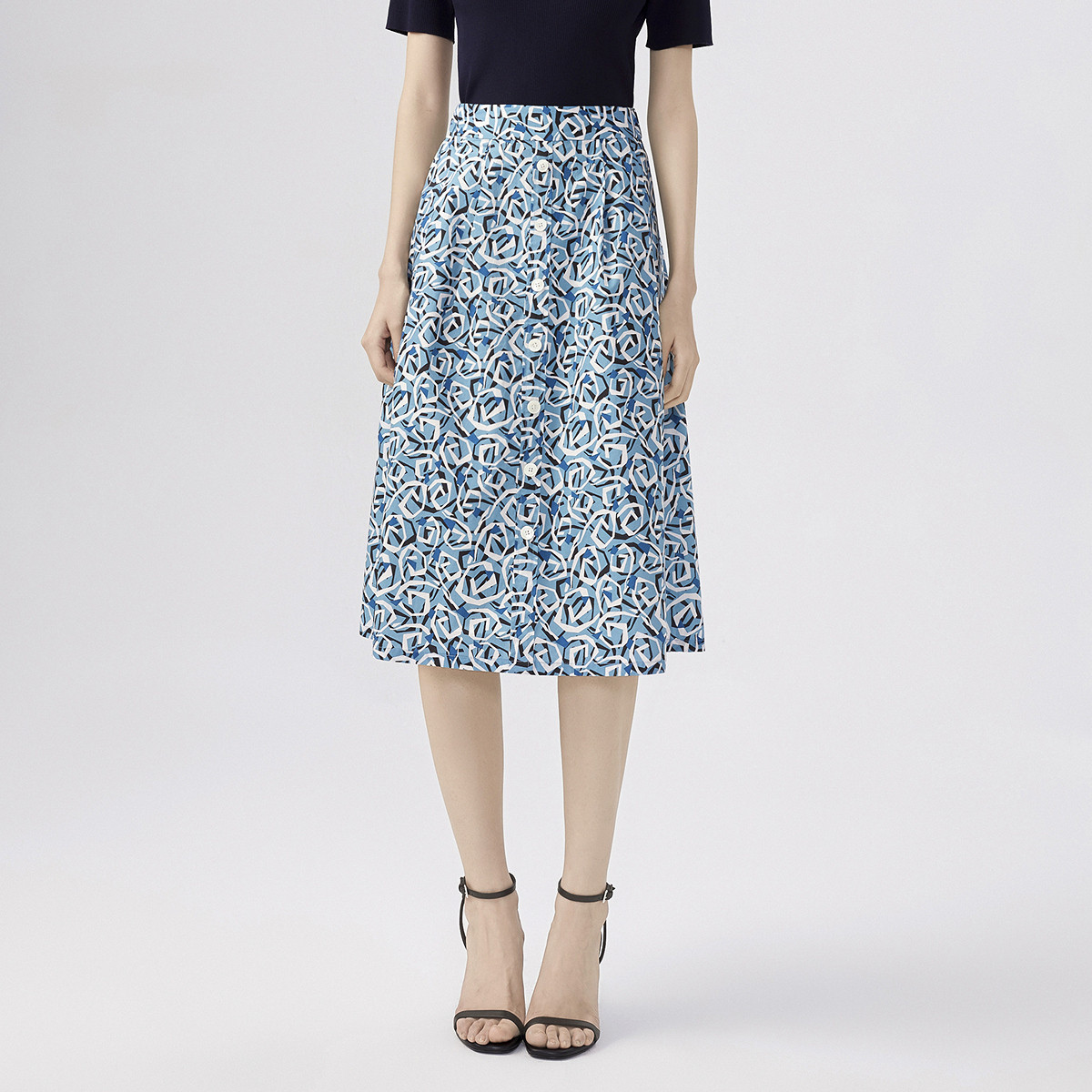 夏款高腰碎花通勤风半身裙女印花裙朗姿集团 829017