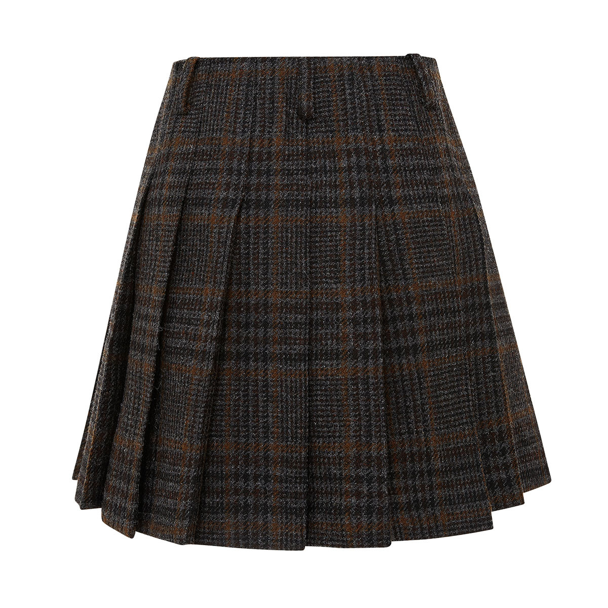 地素毛呢格子百褶半裙秋冬通勤学院风短裙女 597515