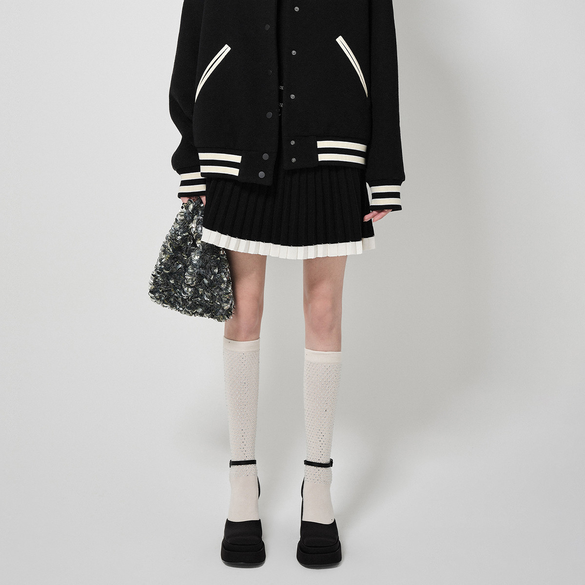 地素条纹拼色毛衫半裙秋冬学院风百褶裙短裙女 022923