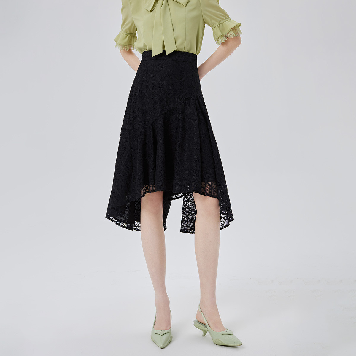【商场同款】气质精致蕾丝裙时尚不规则半截裙女中长款显瘦A字裙 004054