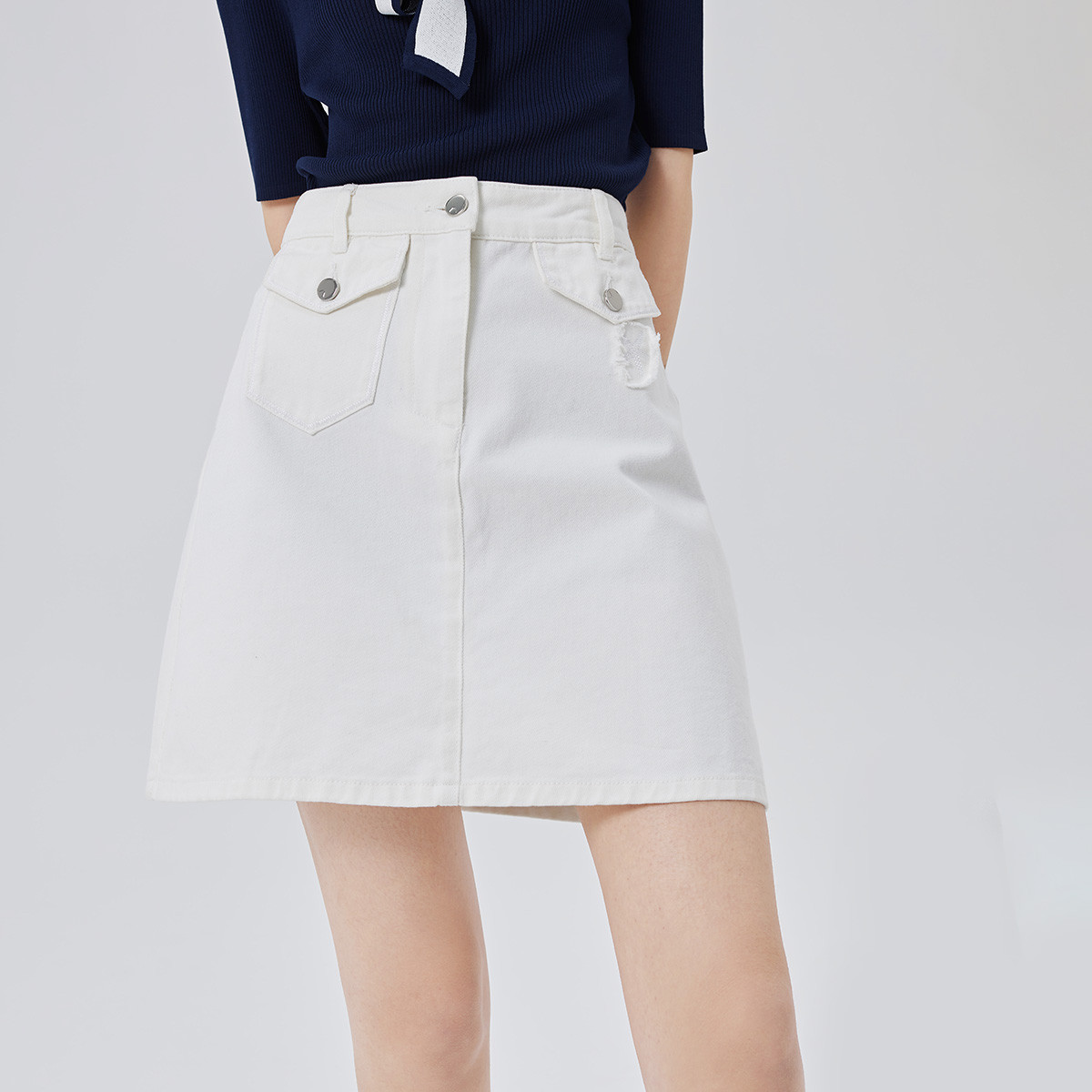 【商场同款】100%纯棉A字裙海螺绣花修身半截裙性感牛仔短裙 743510