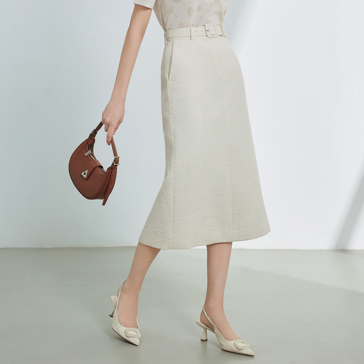 春秋款小香风气质温柔优雅质感后开叉半身裙 814681