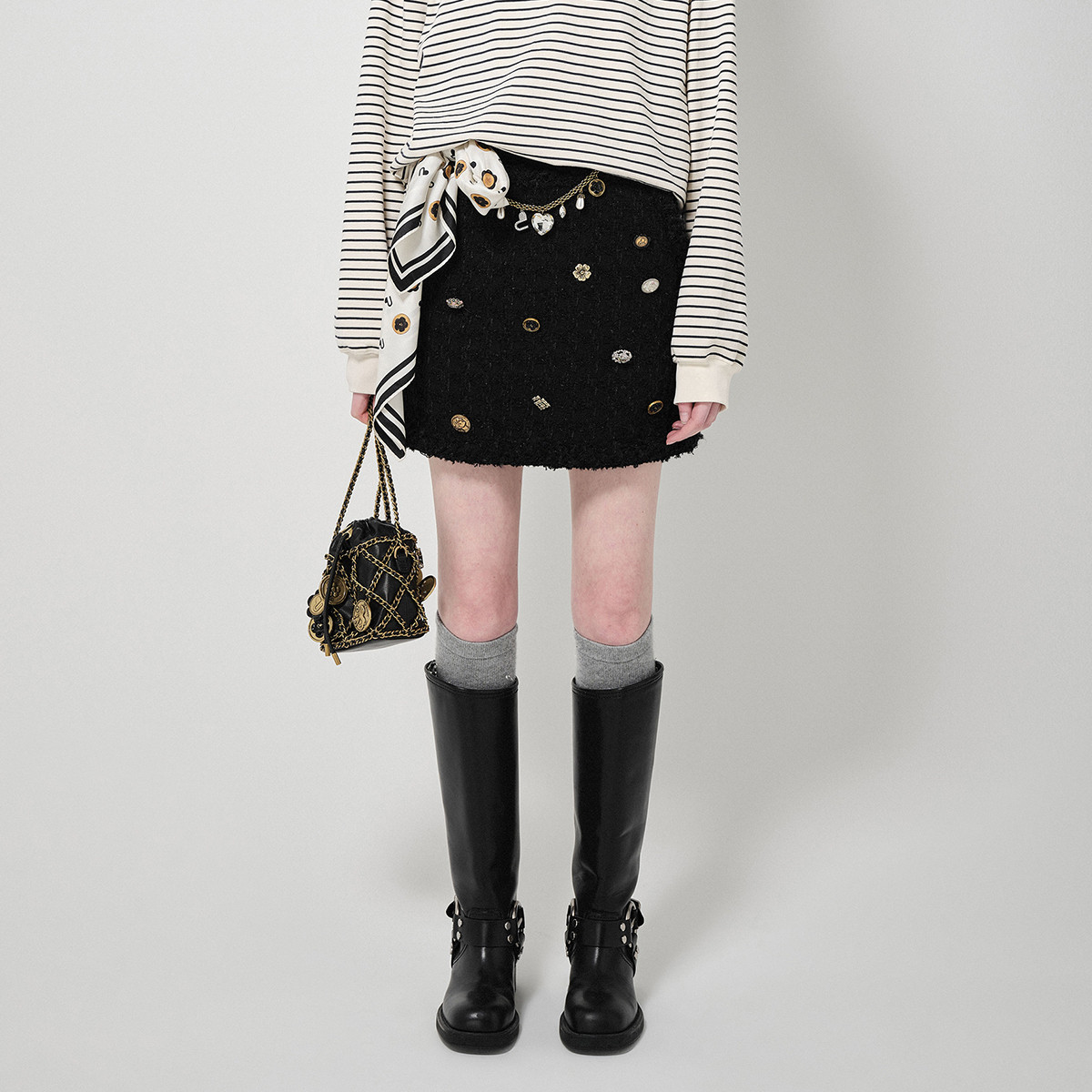 地素装饰扣短裙秋冬季专柜小香风别致小众半裙女 770571