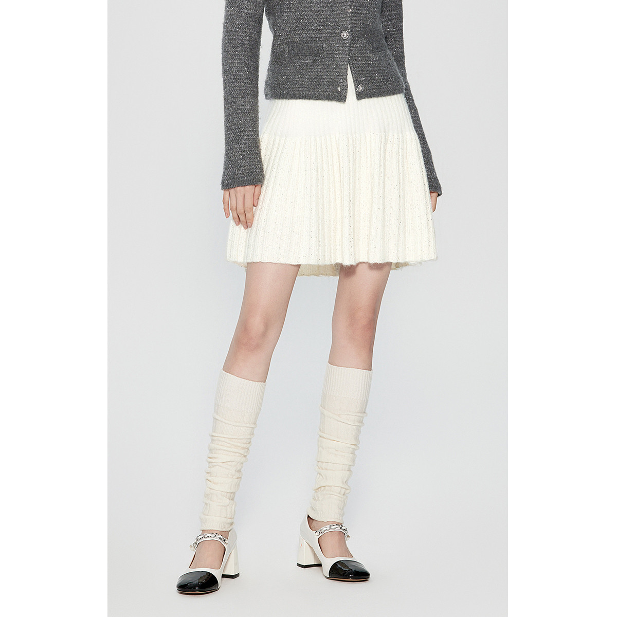 春装高腰a字短裙坑条毛织半身裙女 370063