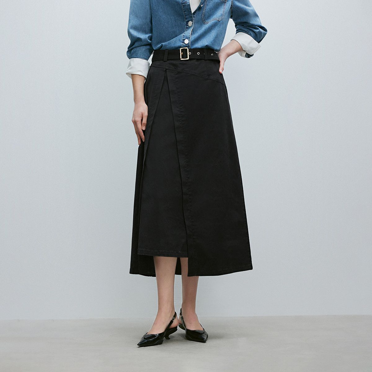 【拼接开衩】25夏季含莱赛尔设计感百搭纯色开衩中长裙半身裙女 131930
