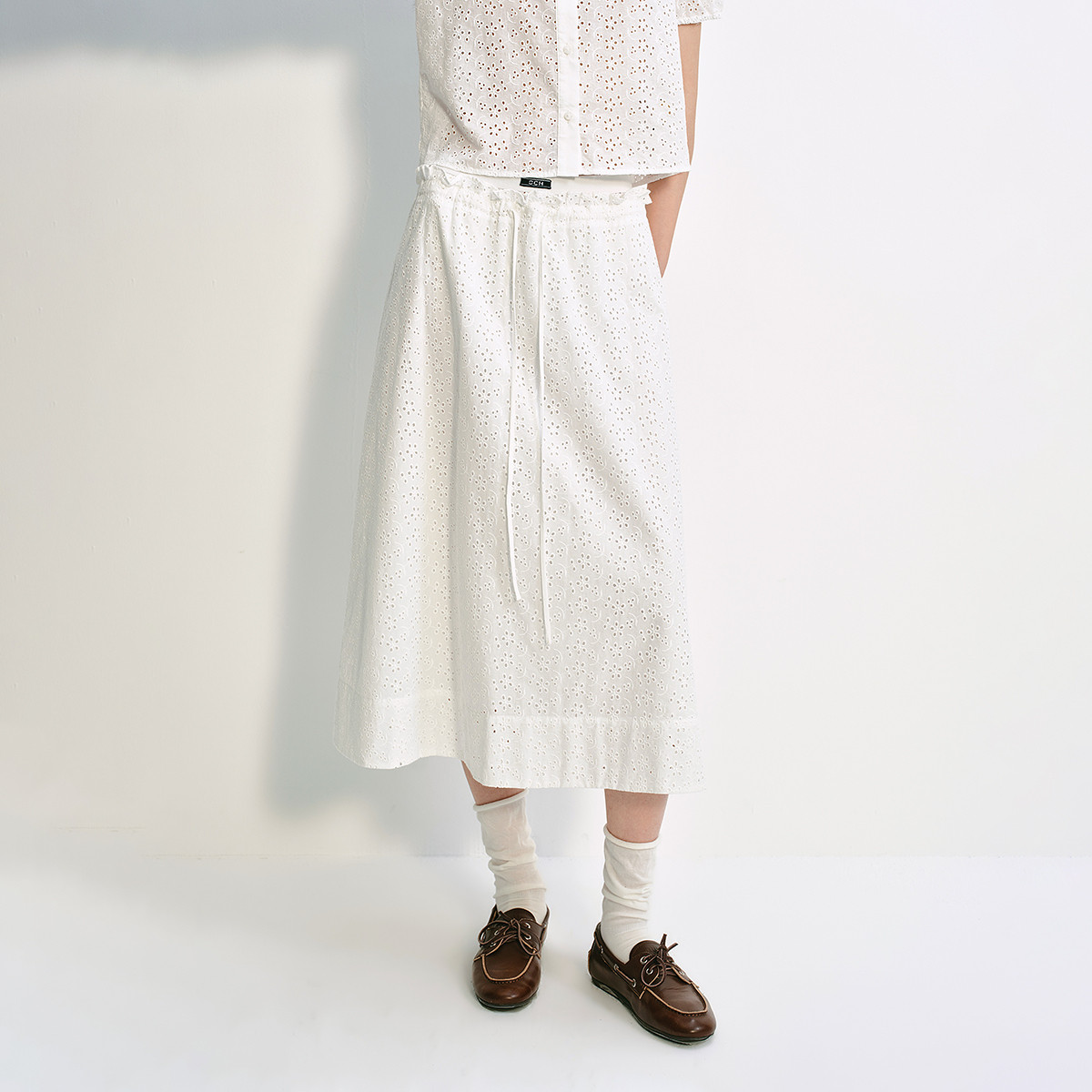 限定系列OCH.夏装 中长镂空绣花A字100%棉高腰半身裙 677327