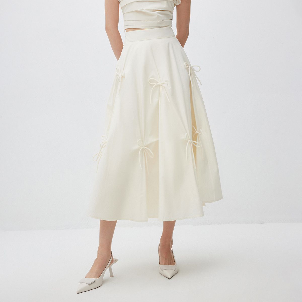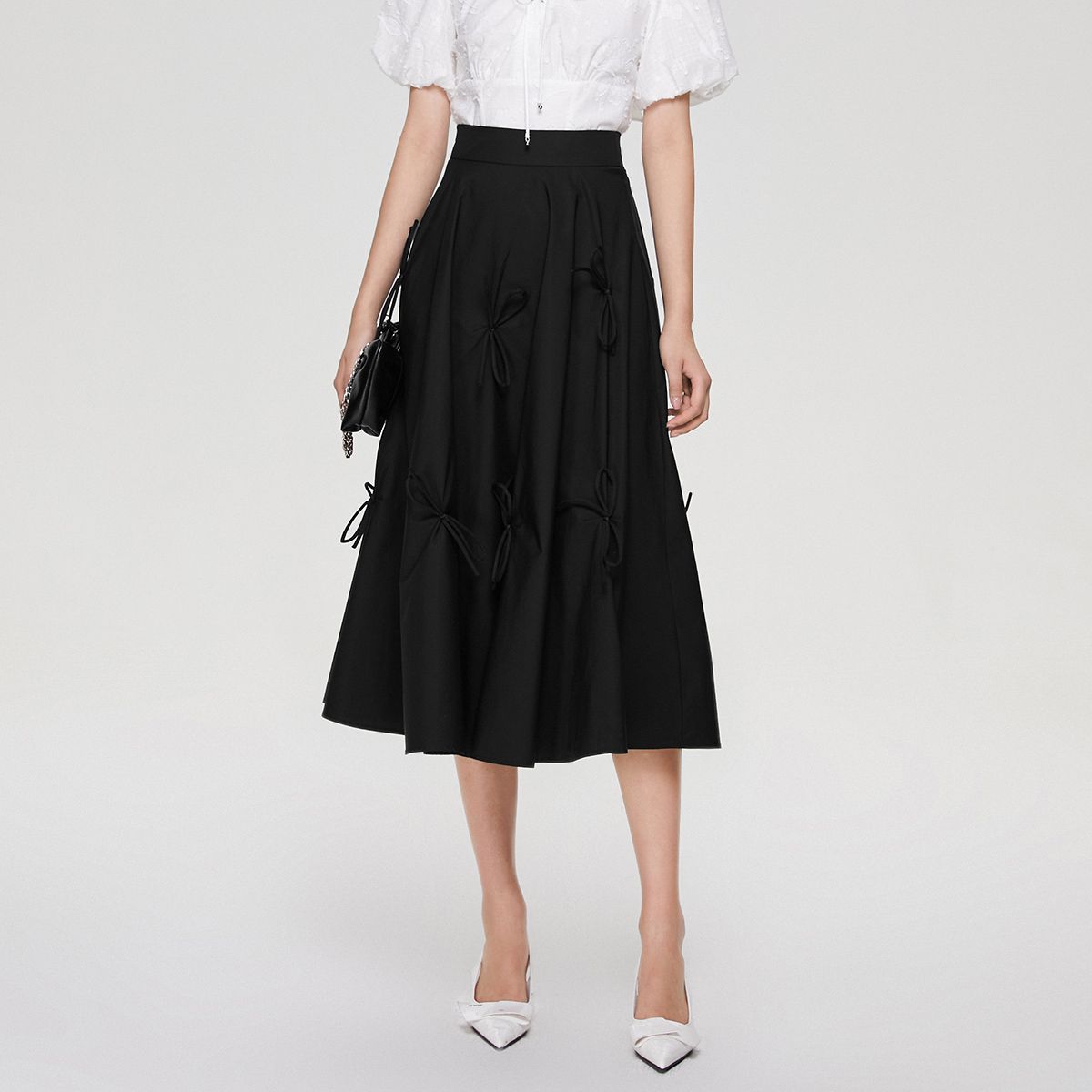【半身裙】2025夏季时尚简约中长款A字裙蝴蝶结半身裙女 493530