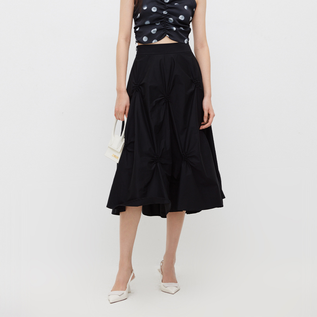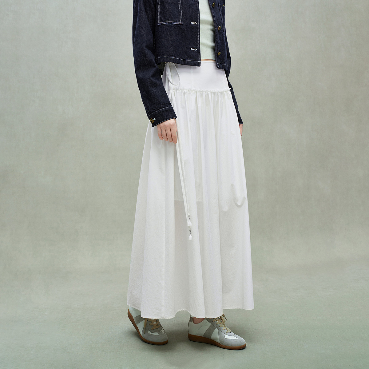 限定系列OCH.夏装 伞裙长裙系带气质皱感纯棉a字半身裙 663759