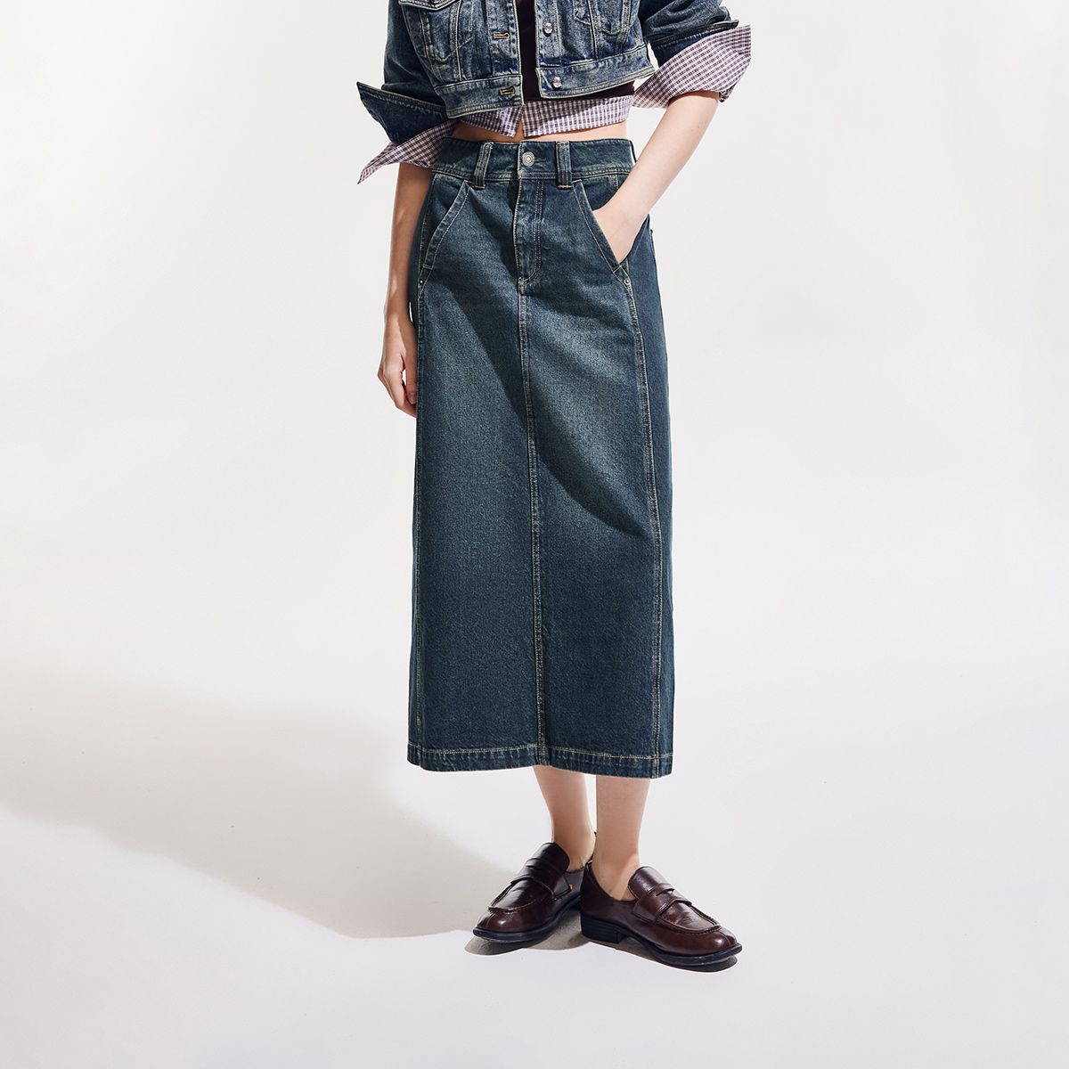 【A字伞摆】2025夏季水洗做旧显瘦中长款半身裙女 248474