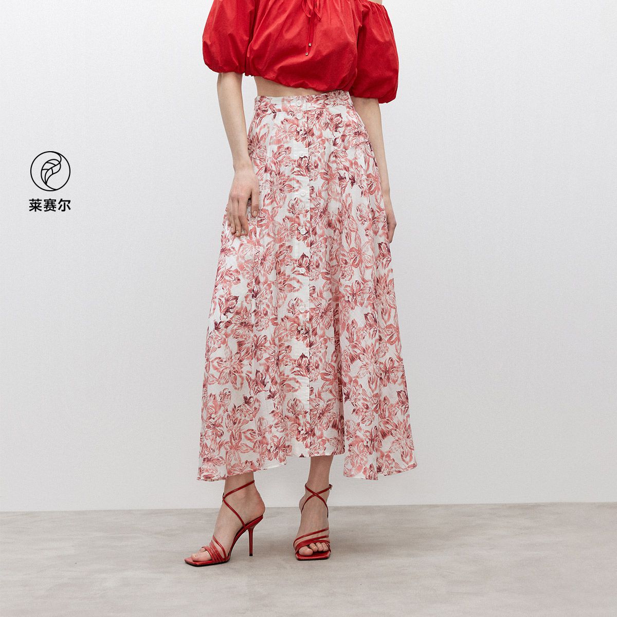 【飘逸大摆量】25夏季含莱赛尔浪漫飘逸高腰印花中长裙半身裙女 730138