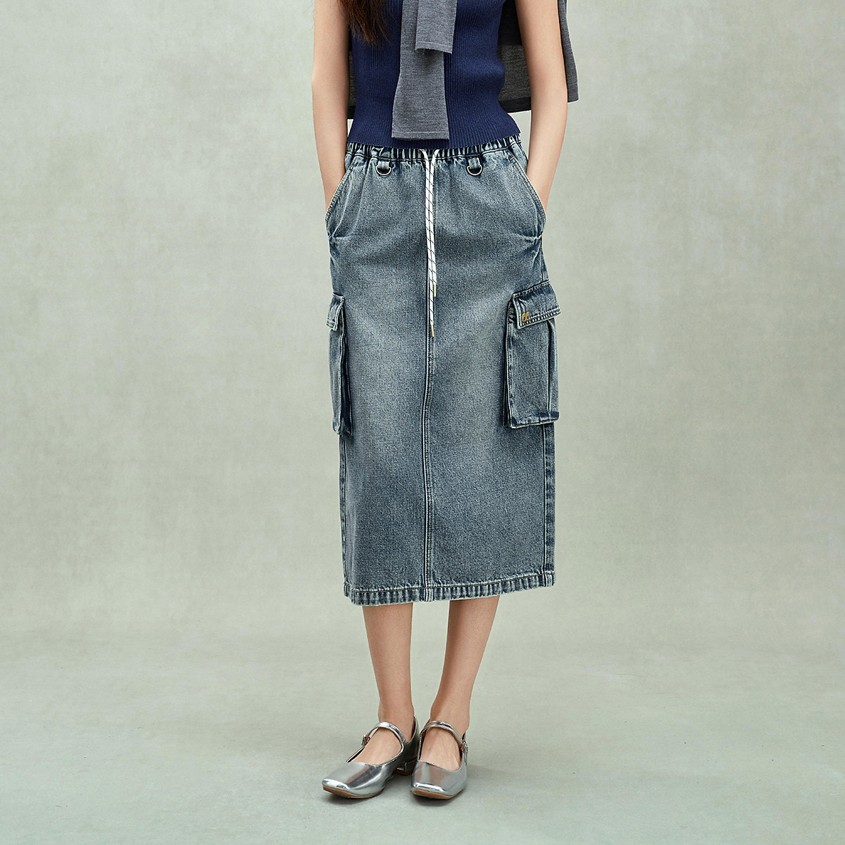 限定系列OCH.春装 工装风中长款抽绳休闲直筒牛仔半身裙 219151