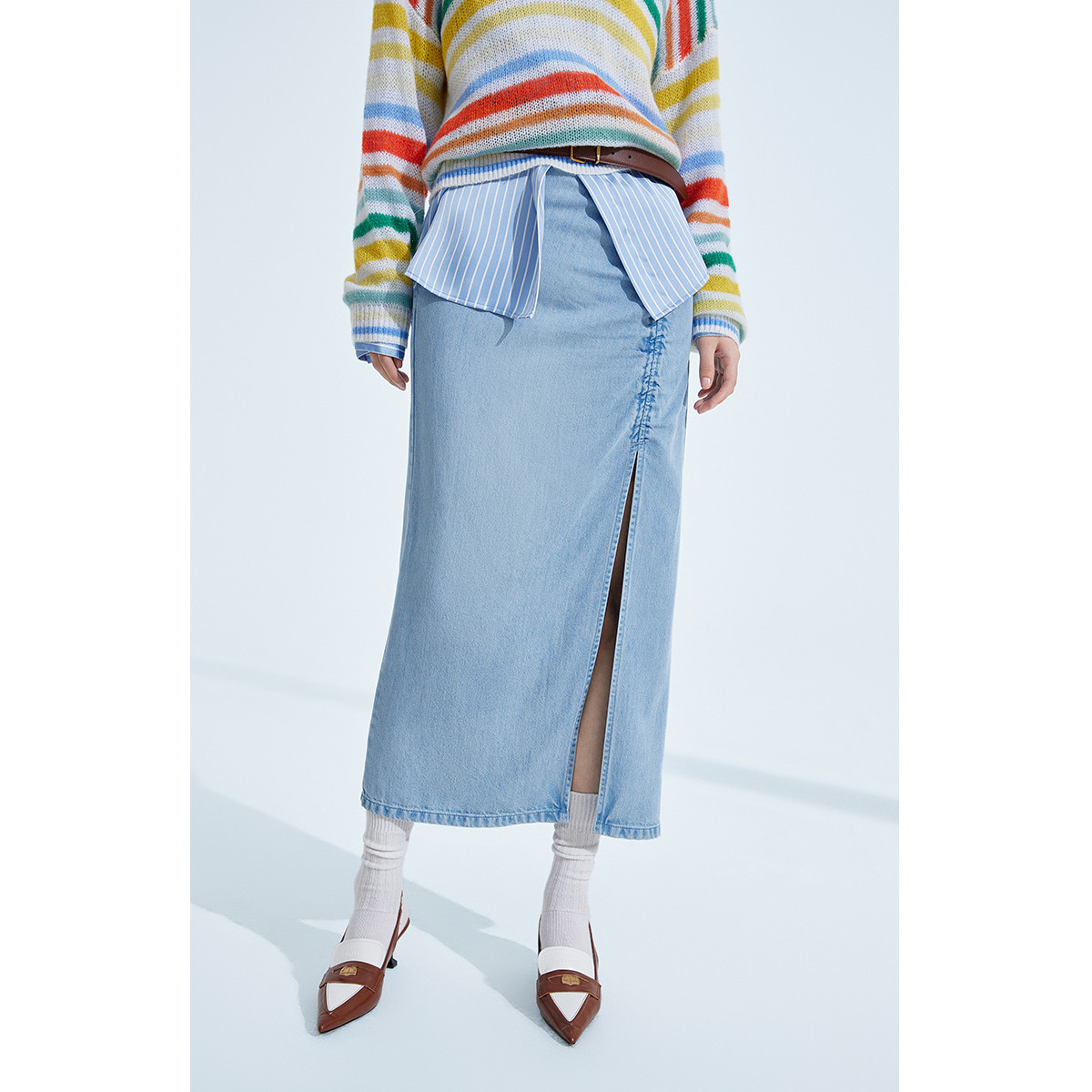黑标系列春装 开衩通勤中长直筒牛仔半身裙 270287
