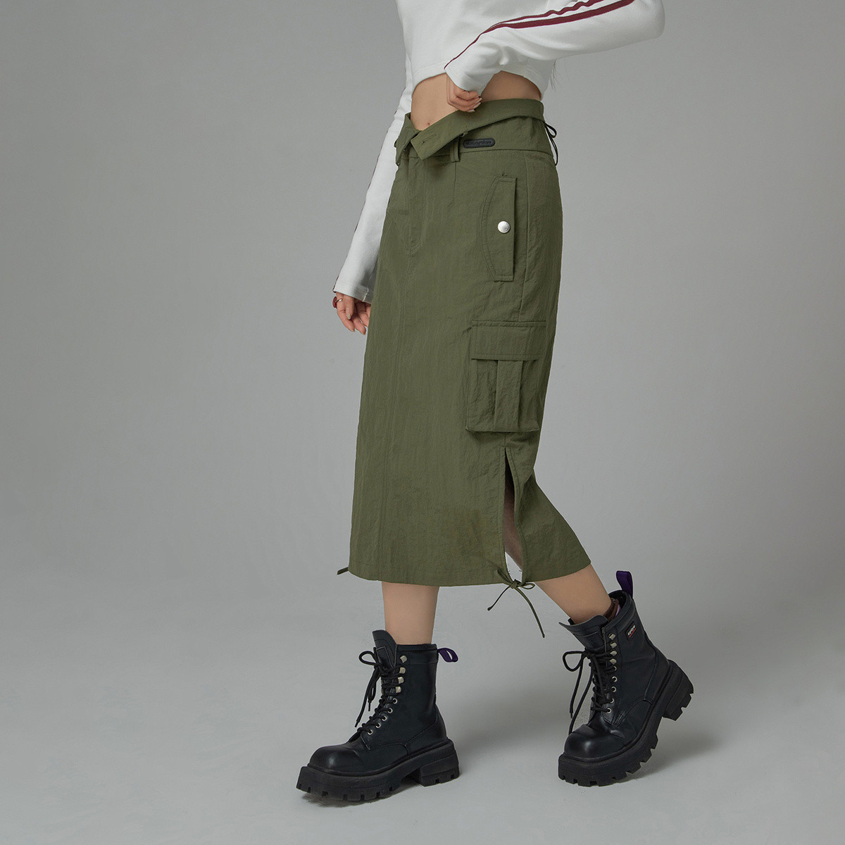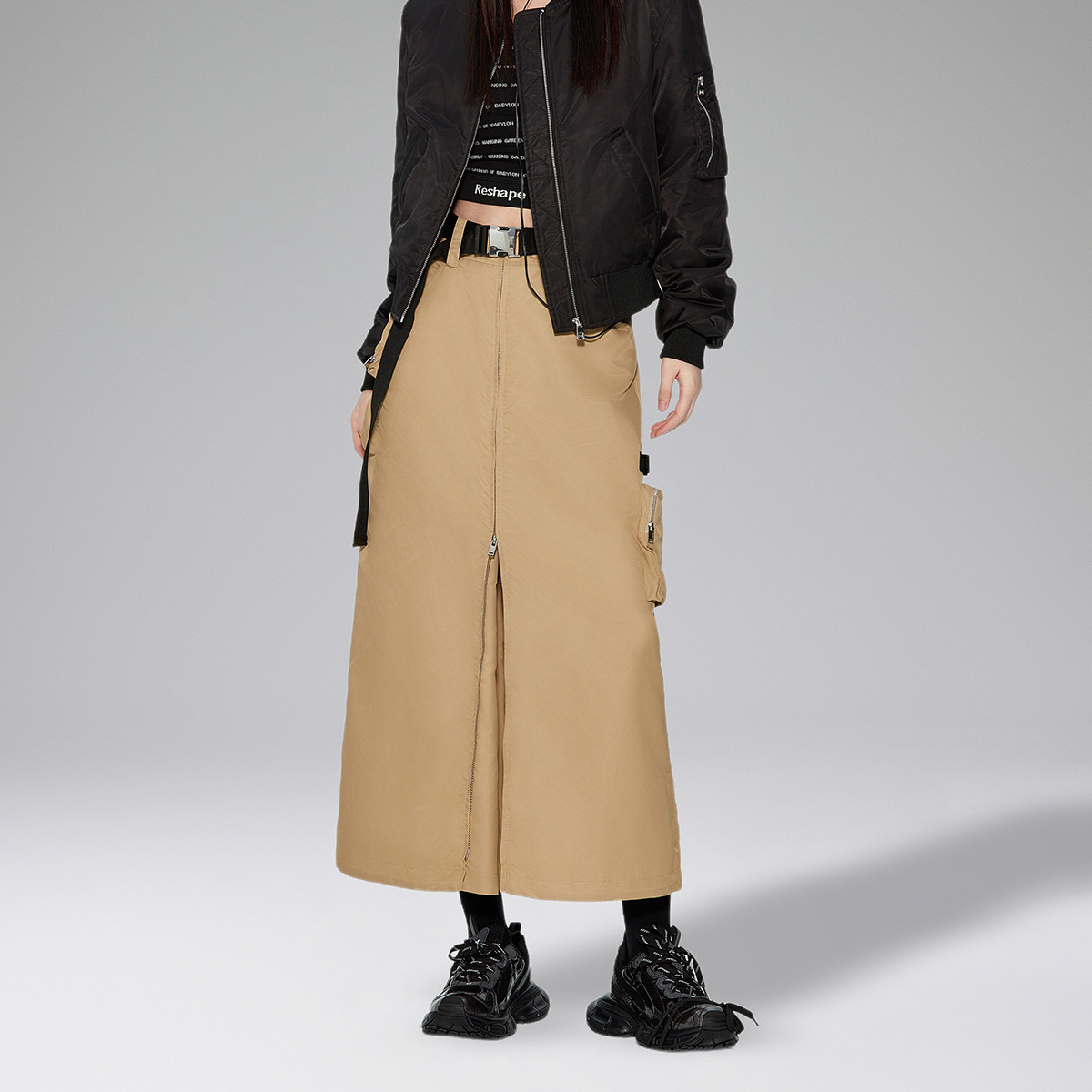 春装 休闲机能风中长款降落伞工装半身裙女 323535