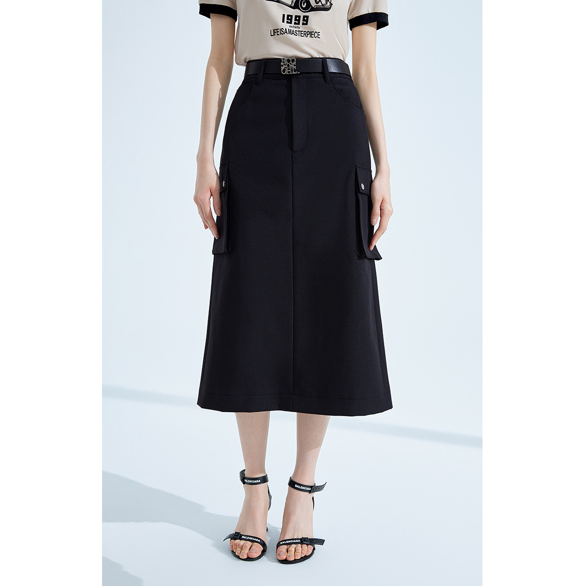 黑标系列春装 中长款休闲a字工装风半身裙 039951